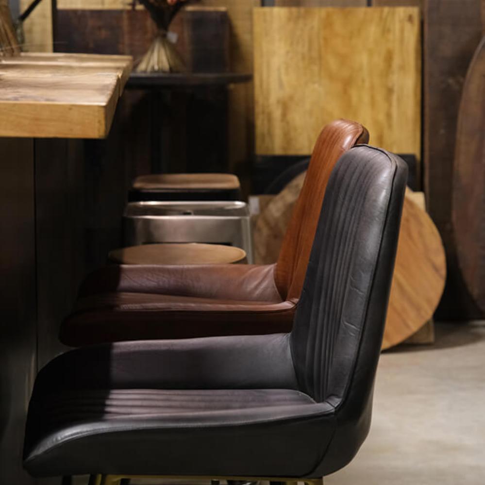 Wow! Ein wunderbarer Barhocker aus dem köstlichsten Büffelleder, der jedes Restaurant, jede Bar oder Ihr privates Zuhause schmücken wird. Die Rückenlehne und der Sitz des Barhockers sind mit gestepptem Leder bezogen, das ein weiches, angenehmes und bequemes Gefühl vermittelt. Eleganz erhält der Barhocker durch das schlichte goldfarbene Metallgestell, das ihm ein leichtes Aussehen verleiht, das sich perfekt in die moderne nordische Einrichtung einfügt. Bitte beachten Sie, dass der Stuhl in zwei Teilen mit einer kleinen Tüte mit Schrauben geliefert wird, sodass Sie die Schale einfach auf dem mitgelieferten Gestell montieren können. Beachten Sie die Sitzhöhe von 68 cm, wodurch der Barhocker ideal für z.B. eine Kücheninsel wird.