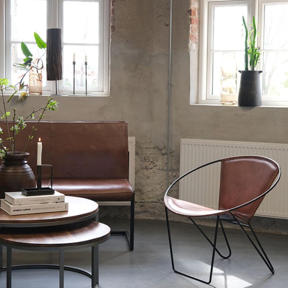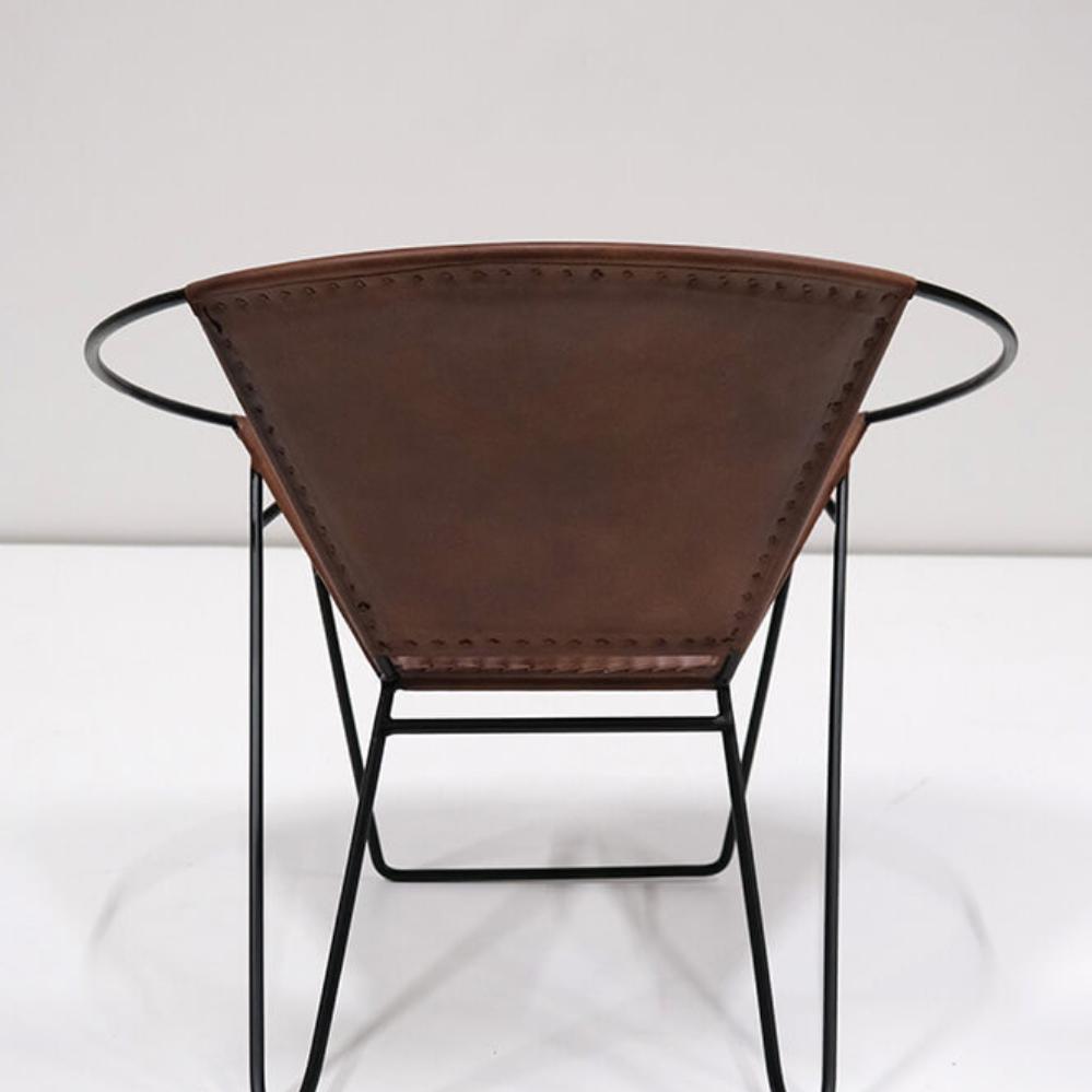 Ein super schöner Loungesessel, der einfach und stilvoll aussieht. Der Stuhl ist aus einem schwarzlackierten Eisengestell mit Leder auf Sitz und Rückenlehne hergestellt. Da die Formen weich, leicht und rund sind, entsteht ein wunderschöner moderner Gesamtausdruck, der einen guten Stil ausstrahlt.