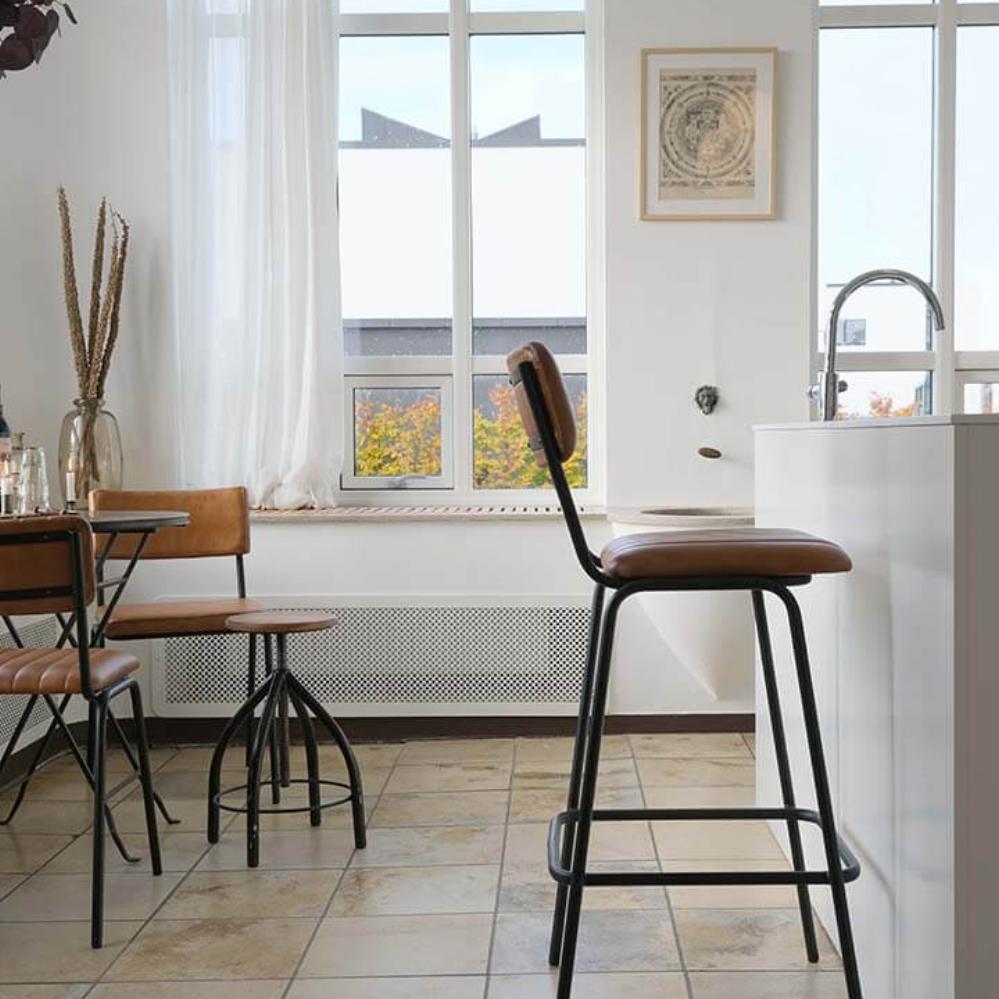 Dieser Barhocker kombiniert Komfort und Stil mit seinem gesteppten braunen Ledersitz und Rückenlehne. Das schwarze Metallgestell verleiht einen modernen und industriellen Touch und macht ihn ideal für Hochtische zu Hause oder in Barbereichen. Der Barhocker wird in zwei Teilen geliefert, wobei die Rückenlehne schnell und unkompliziert mit den mitgelieferten Schrauben montiert werden kann. Möchten Sie einen einheitlichen Look? Suchen Sie nach der Artikelnummer MA0120 für einen passenden Esszimmerstuhl im gleichen Stil. Dieser Stuhl ist die perfekte Wahl für sowohl private als auch kommerzielle Einrichtungen.