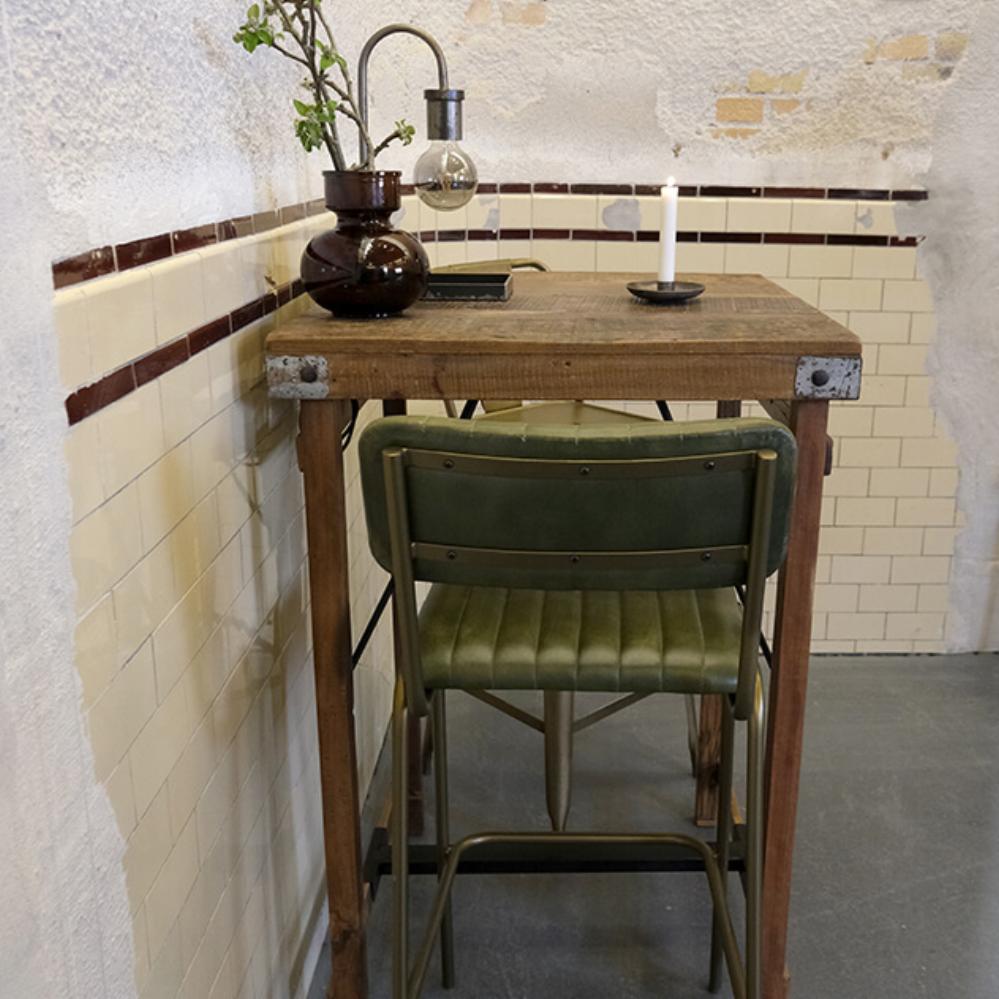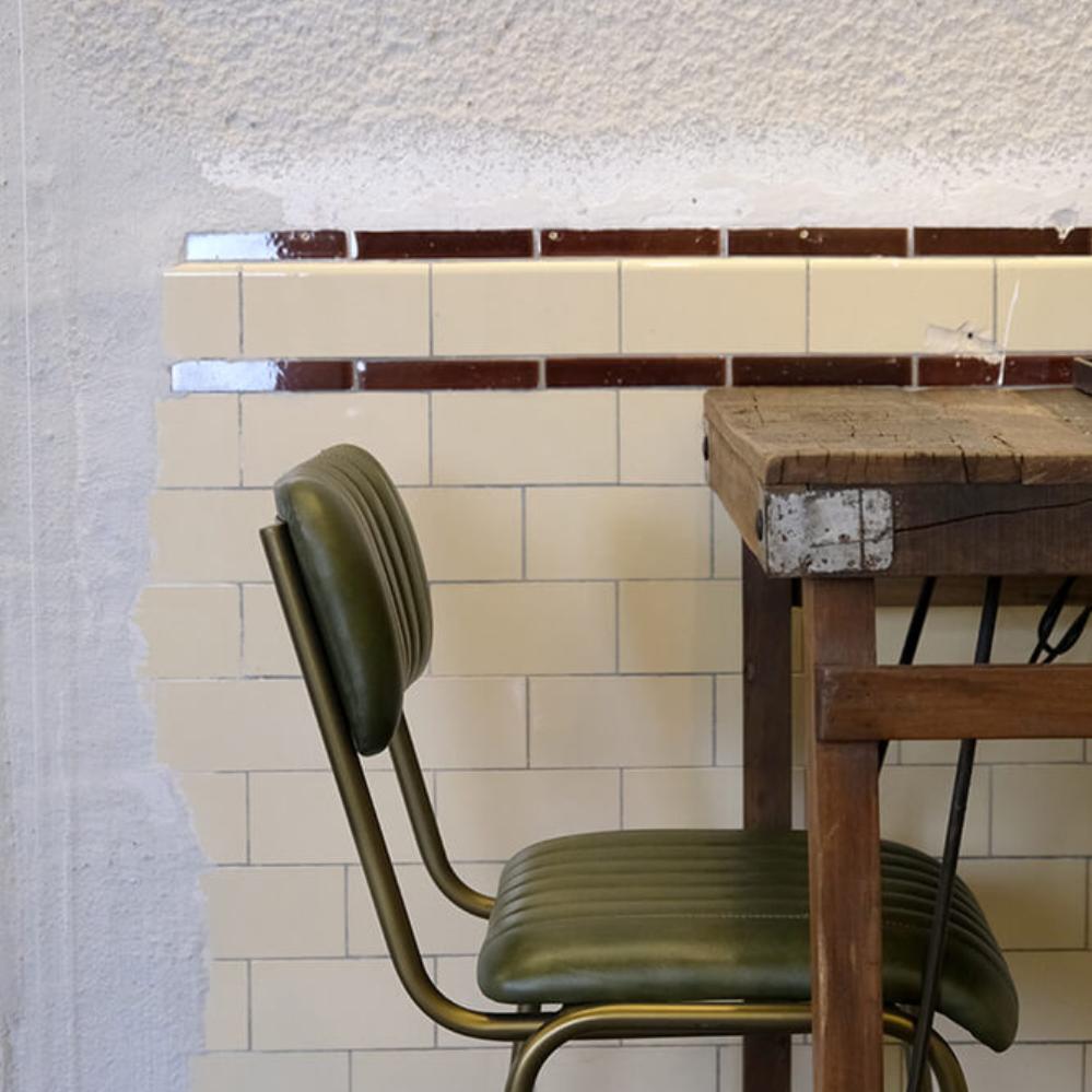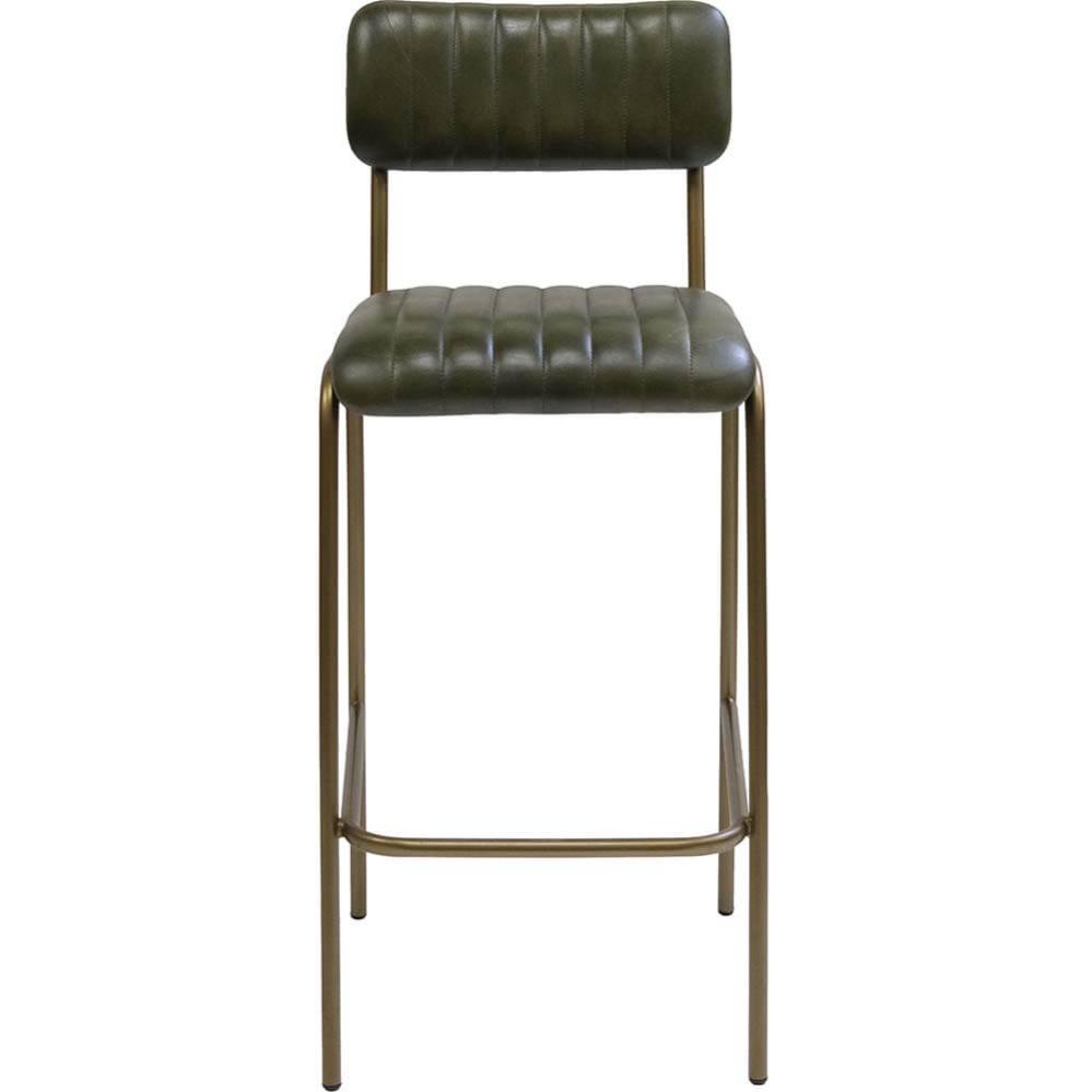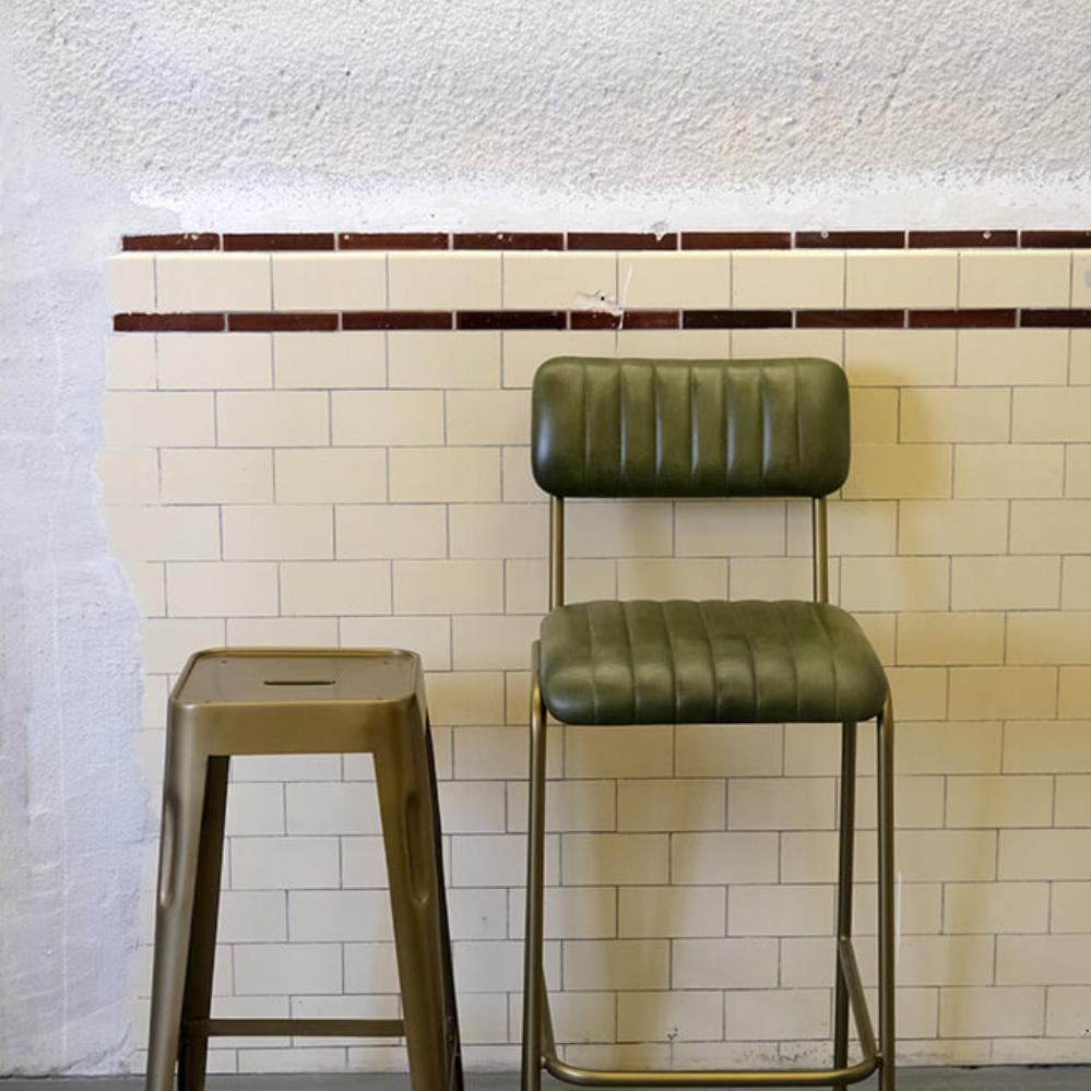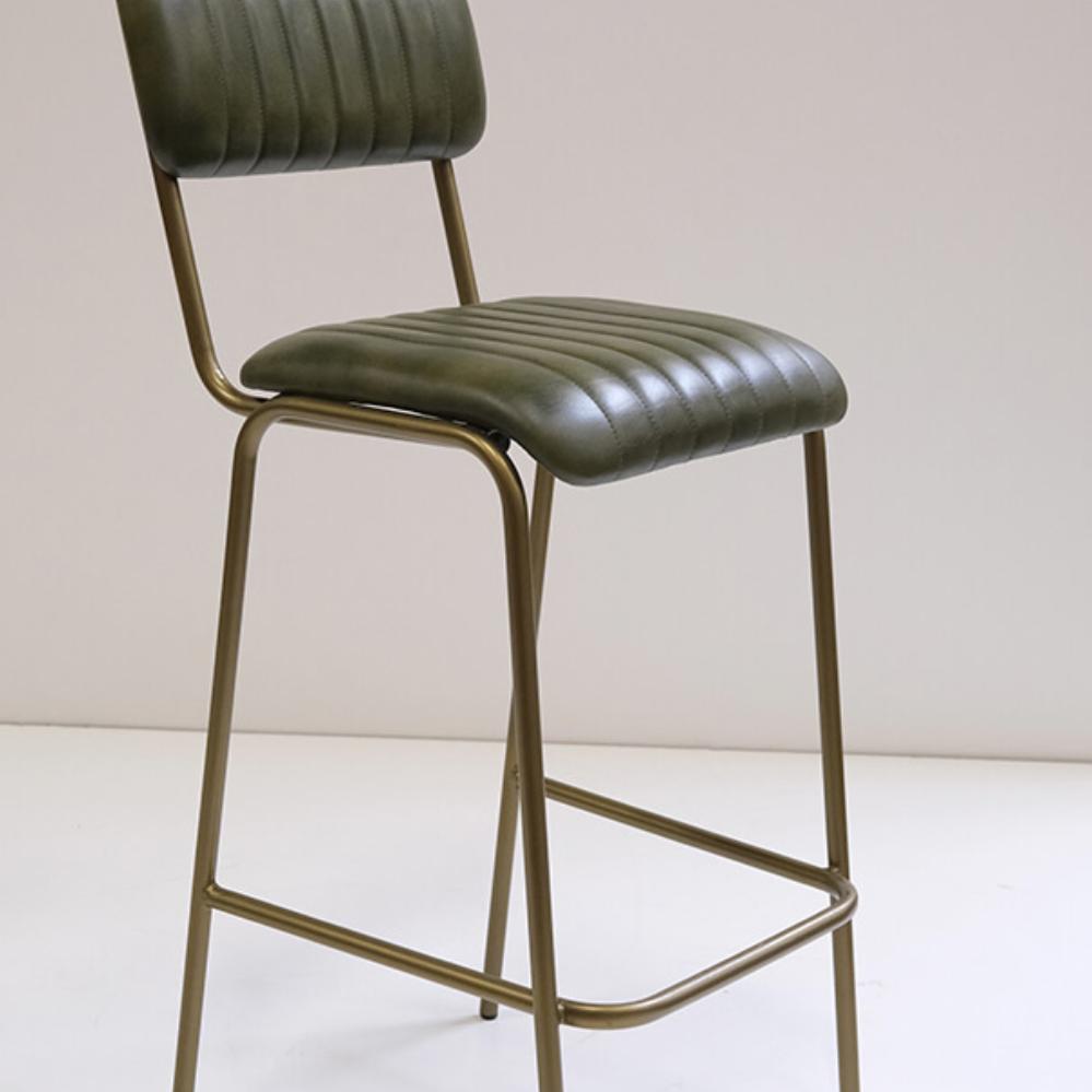 Diner Barhocker mit gestepptem Leder - Grün/Messing