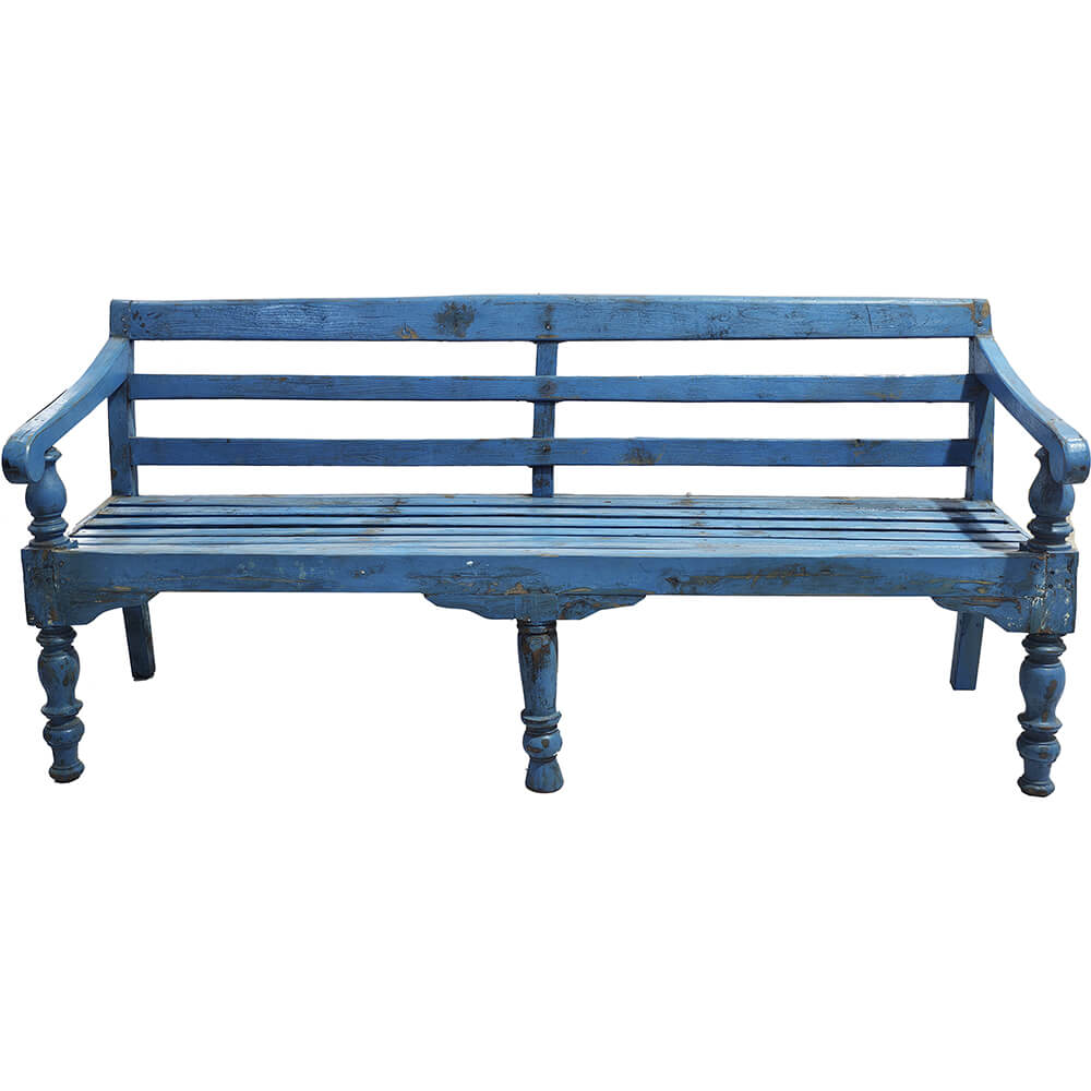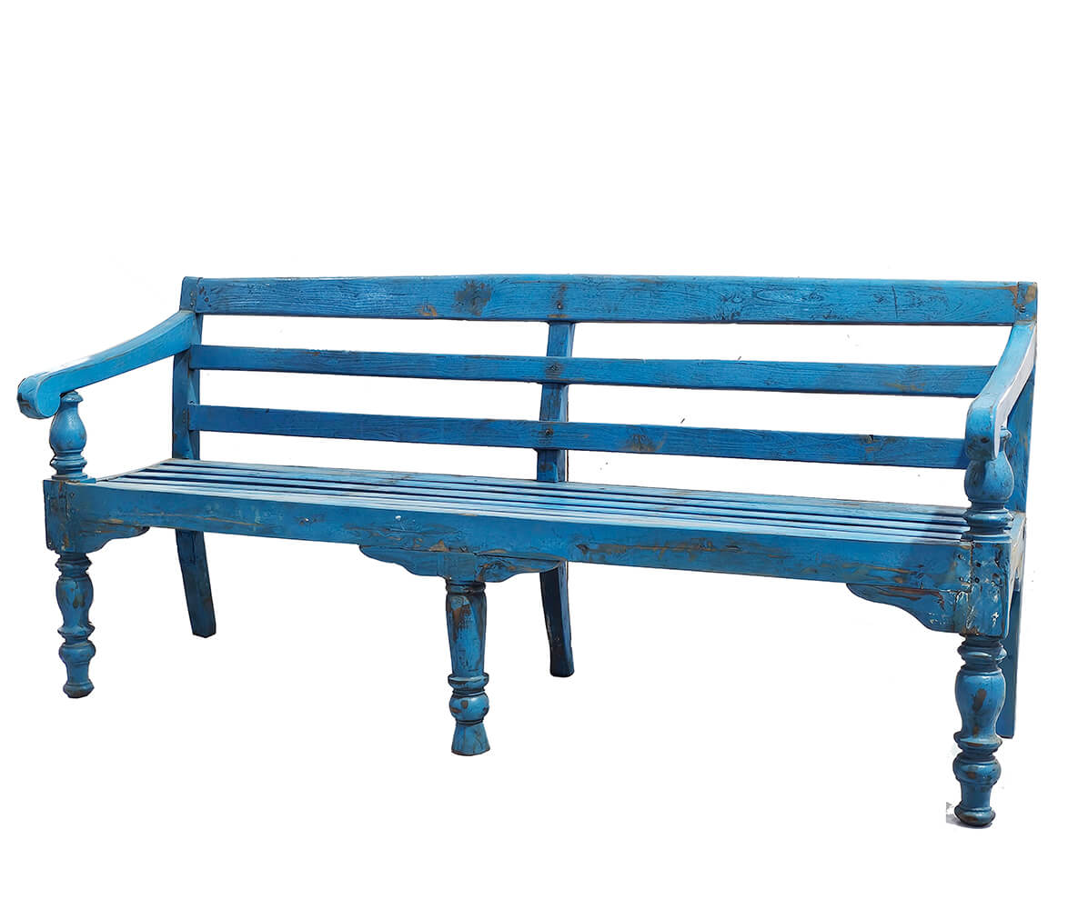 Diese Bank bleibt garantiert nicht unbemerkt. Die wunderschöne alte Holzbank ist in einem lebendigen Blauton gestrichen, der mit der Zeit eine perfekte Patina und charmante Gebrauchsspuren entwickelt hat – ein echtes Stück Geschichte. Die gedrechselten Beine und feinen Details unterstreichen das handwerkliche Können und den besonderen Charakter. Ob im Zuhause, im Laden oder im Café – diese Bank bringt Persönlichkeit und Wärme in jeden Raum. Ideal für den Flur, die Küche, die Ausstellung oder überall dort, wo Funktion auf Ausstrahlung treffen soll. Eine Bank wie diese braucht keine großen Worte. Sie schafft Atmosphäre ganz von allein.