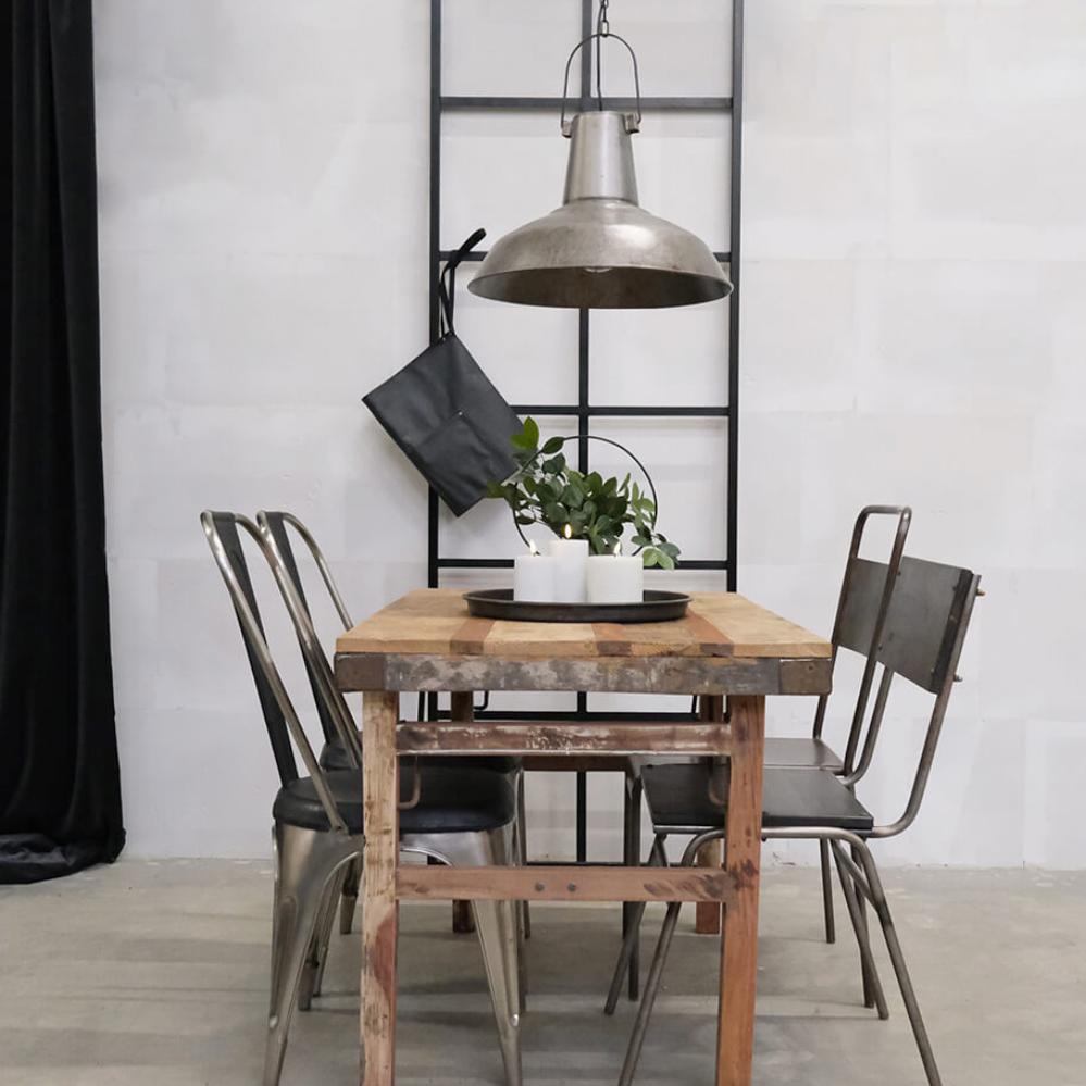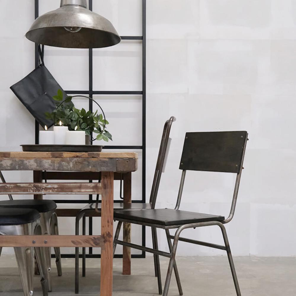 Hier finden Sie einen einfachen und robusten Esszimmerstuhl, der zu der rohen und rustikalen Einrichtung passt. Der Stuhl hat ein lackiertes Eisengestell. Sitz und Rückenlehne sind aus Holz. Dieser Stuhl kann in Ihrem Café oder Restaurant vorteilhaft eingesetzt werden. Er lässt sich leicht mit einem feuchtem Tuch zu reinigen. Wenn Sie den Komfort verbessern möchten, können Sie ein Sitzkissen oder ein schönes Lammfell verwenden.