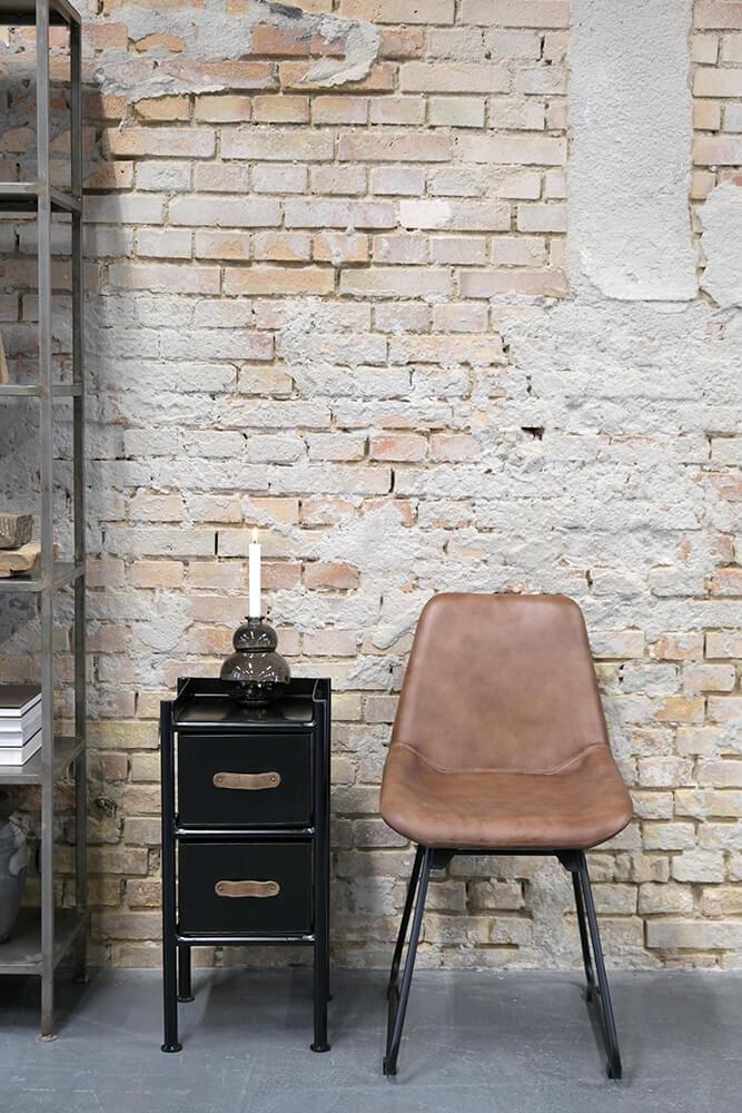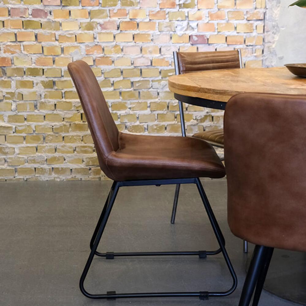 Herrlicher brauner Lederstuhl mit schwarz lackiertem Eisengestell. Sie erhalten Schlichtheit und Komfort in diesem stilvollen Esszimmerstuhl, der entwickelt wurde, um jedem Essbereich einen luxuriöse Note zu verleihen. Der Stuhl ist sorgfältig mit hochwertigem Büffelleder gepolstert, und die warme braune Nuance schafft eine einladende Atmosphäre. Das zeitlose Design des Esszimmerstuhls sorgt dafür, dass er sowohl in moderne als auch in traditionelle Einrichtungen wunderschön passt.