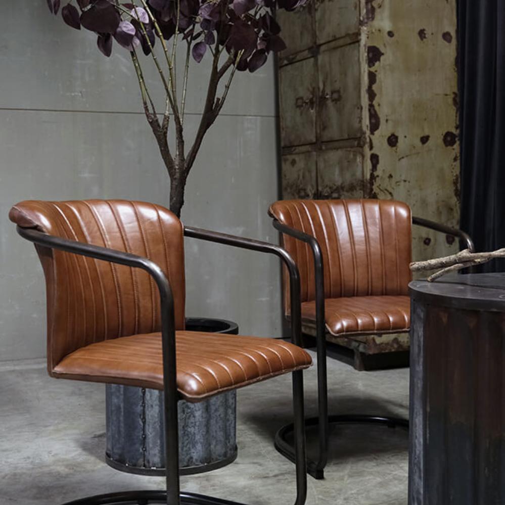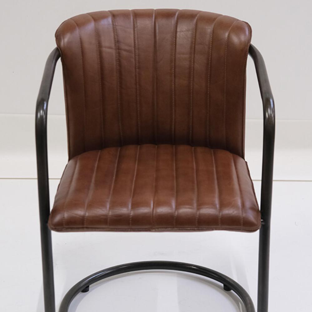 Dieser Esszimmerstuhl mit gestepptem Leder strahlt rustikalen Charme und industrielles Aussehen. Der Sitz und die Rückenlehne sind mit braunem, gestepptem Büffelleder bezogen, das dem Stuhl einen authentischen und maskulinen Look verleiht. Das schwarze Metallgestell mit seinen geschwungenen Linien sorgt für einen robusten Ausdruck und verleiht dem Design gleichzeitig eine moderne Note. Das Design des Esszimmerstuhls bietet hervorragenden Sitzkomfort und macht ihn ideal sowohl für den Esstisch zu Hause als auch als Teil der Einrichtung in Cafés und Restaurants.