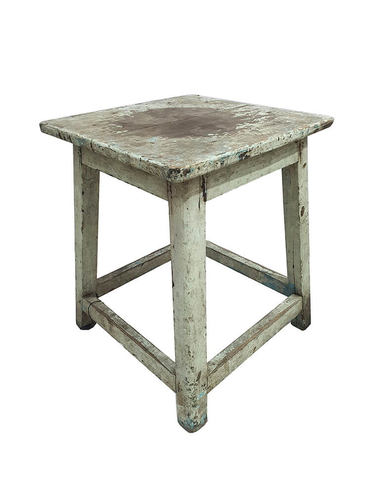 Diese schöne Auswahl alter grüner Hocker strahlt Authentizität und Geschichte aus. Die Hocker sind aus massivem Holz gefertigt und haben im Laufe der Zeit eine schöne, abgenutzte Patina mit abblätternder Farbe, Gebrauchsspuren und Unebenheiten entwickelt, wie sie nur durch echte Nutzung entsteht. Der gedämpfte Grünton variiert von Hocker zu Hocker und verleiht jedem Stück seinen ganz eigenen Ausdruck. Ursprünglich wurden die Hocker in Arbeitsumgebungen, Werkstätten oder Institutionen verwendet, in denen Funktion und Haltbarkeit wichtiger waren als Perfektion. Genau deshalb wirken sie heute als ehrliche und charaktervolle Möbelstücke mit viel Seele. Sie lassen sich vielseitig einsetzen: als zusätzliche Sitzgelegenheit, kleiner Beistelltisch, Podest für Pflanzen oder Lampen oder zusammen arrangiert als dekoratives und stimmungsvolles Element im Geschäft, Café oder Zuhause. Eine einzigartige Auswahl, bei der kein Hocker dem anderen gleicht und bei der die Gebrauchsspuren ein wesentlicher Teil des Charmes sind. Bitte beachten Sie, dass es große Größenunterschiede geben kann.