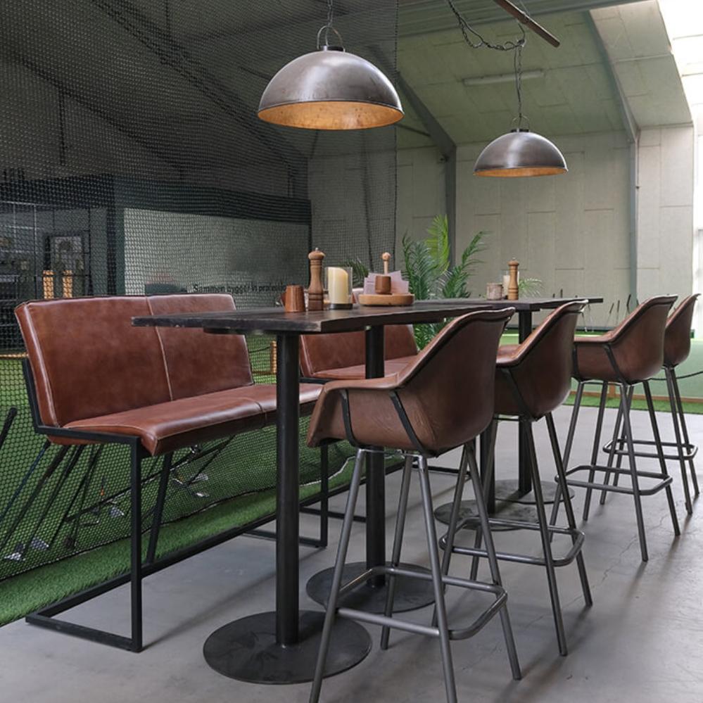 Suchen Sie einen Barhocker, auf dem Sie auch lange bequem sitzen können? Dann ist dieser grossartige Leder-Barhocker mit Armlehnen genau das Richtige für Sie. Der Hocker hat einen starken und soliden Eisenrahmen und einen weichen und bequemen Ledersitz. Es gibt einen coolen Kontrast zwischen dem weichen Leder und dem rohen industriellen Eisen, der einen wunderschönen und stilvollen Look schafft. Der Barhocker hat Streben, auf denen Sie Ihre Füße stützen können. Sie bekommen hier einen Barhocker, bei dem sowohl Design als auch Komfort im Vordergrund stehen.