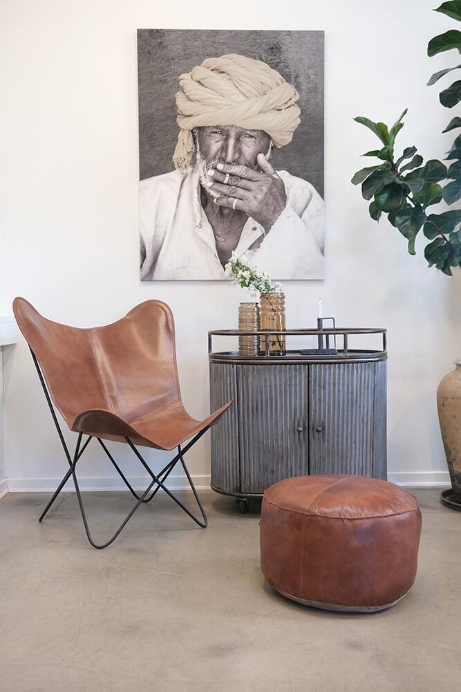 Wenn Sie ein Liebhaber von Minimalismus und stilvoller Einrichtung sind, werden Sie diesen großartigen Sessel mit fast skulpturaler Optik lieben. Dieser böhmische Sessel ist ein echter Hingucker und wird in Ihrer Einrichtung wirklich auffallen. Der Sessel wird in zwei Teilen geliefert: Das Gestell besteht aus schwarz lackiertem Eisen und weist kleine sichtbare Schweißnähte auf. Der Büffellederbezug in wunderschönem Braun wird in einer separaten Verpackung geliefert und kann sofort nach dem Auspacken auf den Rahmen gezogen werden. Runden Sie ihn mit einem weichen Lammfell für noch mehr Gemütlichkeit ab. Das sieht nicht nur kuschelig aus, sondern hält auch warm. Der Sessel ist offen und einladend gestaltet und eignet sich somit perfekt für einen großzügigen Eingangsbereich, Ihre Kuschelecke oder als Sitzmöglichkeit neben dem Couchtisch. Der Sessel ist in verschiedenen Farben erhältlich. Sie finden sie alle hier in unserem Shop.