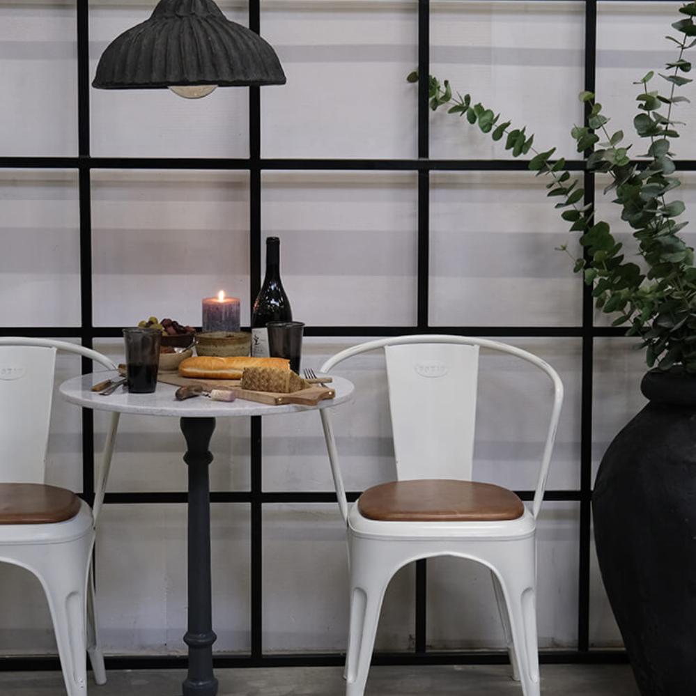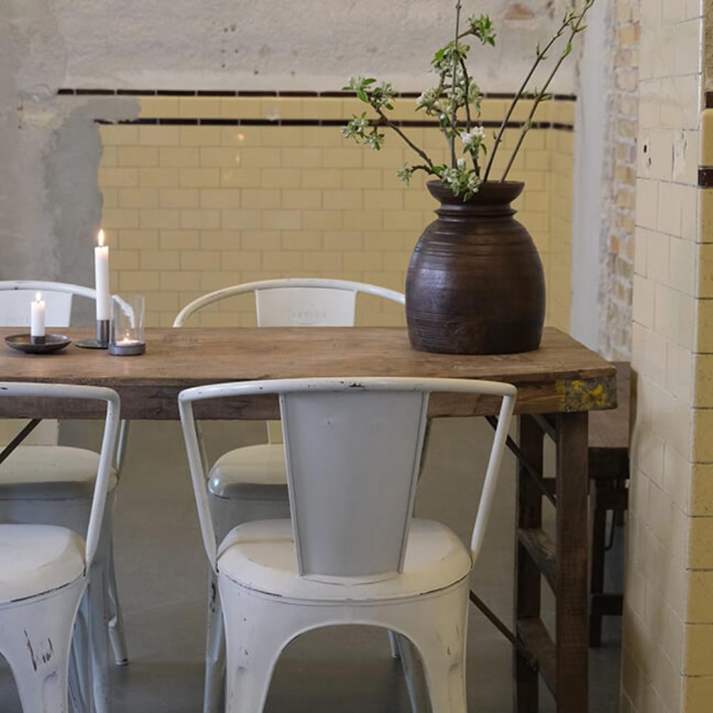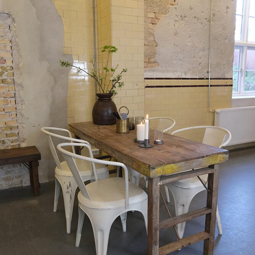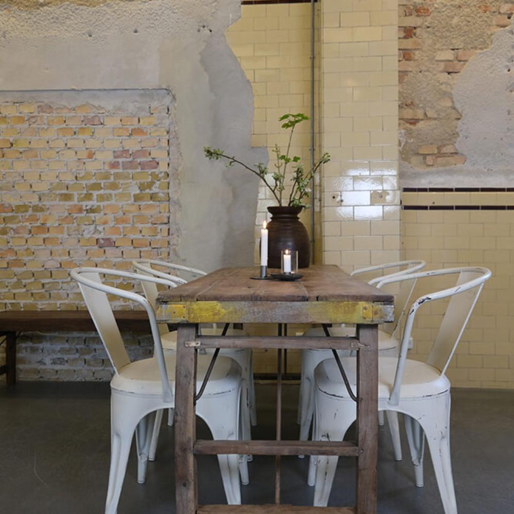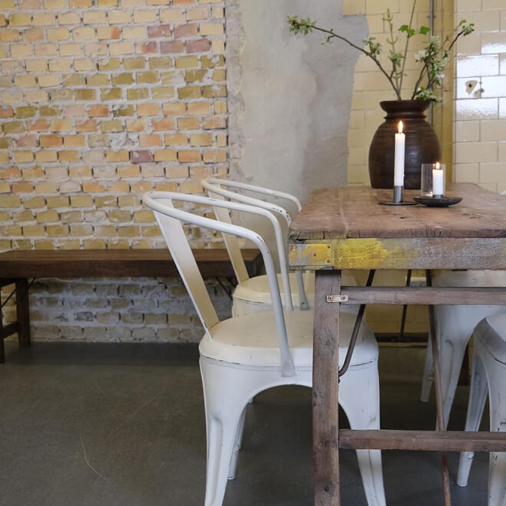Dieser Esszimmerstuhl ist ein weiterer Klassiker aus der Living-Serie, die erstmals 2010 produziert wurde. Der Stuhl hat einen rustikalen und industriellen Look, unterstrichen durch sein robustes Design und das kleine Schild auf der Rückenlehne mit der Nummer FST10. Mit seiner antikweißen Oberfläche passt der Stuhl perfekt in moderne und gemütliche Umgebungen. Für zusätzlichen Komfort können Sie ein Lederkissen in Schwarz oder Braun dazukaufen. Die Living-Serie bietet eine breite Palette an Farben und Oberflächen, die sich ideal rund um einen großen Esstisch oder Konferenztisch kombinieren lassen, um ein dynamisches und persönliches Ambiente zu schaffen. Der Esszimmerstuhl ist auch perfekt für Cafés oder Restaurants, da er leicht zu reinigen und stapelbar ist.