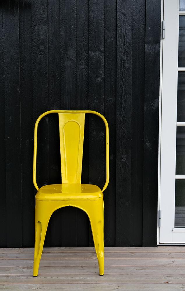Auffälliger Living Esszimmerstuhl mit schöner Patina und hoher Rückenlehne. Mit seiner gelben Farbe hebt er sich definitiv von der Masse ab. Der Stuhl scheint abgenutzt, was ihm Charme und Persönlichkeit verleiht. Wenn Sie Dekor lieben, das nicht völlig anonym ist, dann müssen Sie einfach diesen schönen gelben Stuhl besitzen. Fügen Sie zusätzlichen Komfort mit einem Lederkissen in Schwarz (Artikelnummer M1402) oder Braun (Artikelnummer M1405) hinzu.