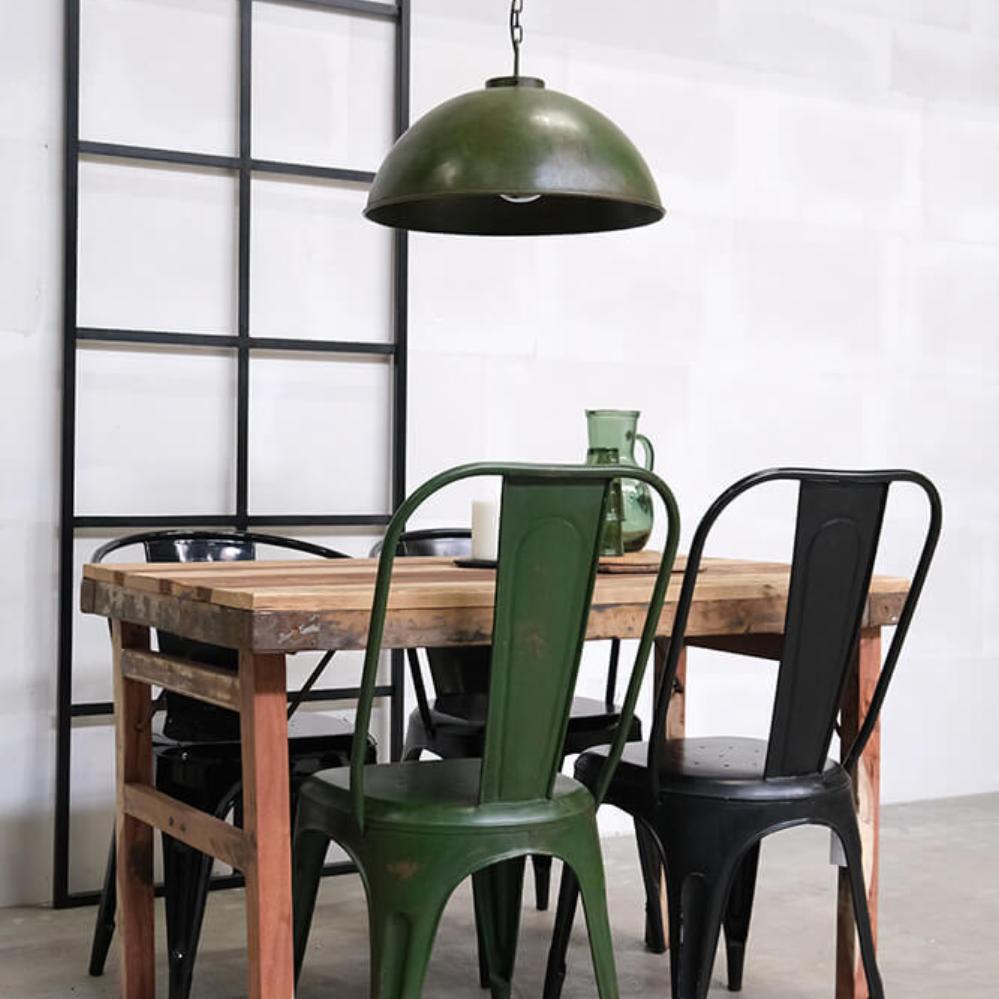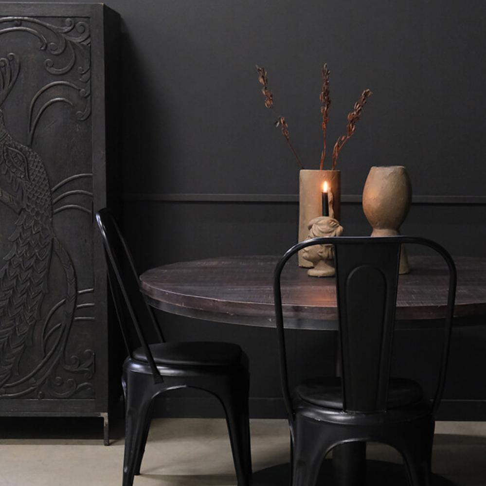 Fantastischer Living Esszimmerstuhl aus antikchwarzem Eisen mit hoher Rückenlehne. Schwarz ist eine sichere Farbwahl, da diese Farbe für fast alles in Ihrem Zuhause geeignet ist. Der Stuhl hat Patina, die ihn noch schöner macht. Dieser Stuhl ist ohne Leder. Wenn Sie dem Stuhl mehr Farbe verleihen möchten, haben wir Kissen in Cognac-Farbe (M1405). Ansonsten haben wir schwarze Kissen (M1402), die zu diesem Stuhl passen.