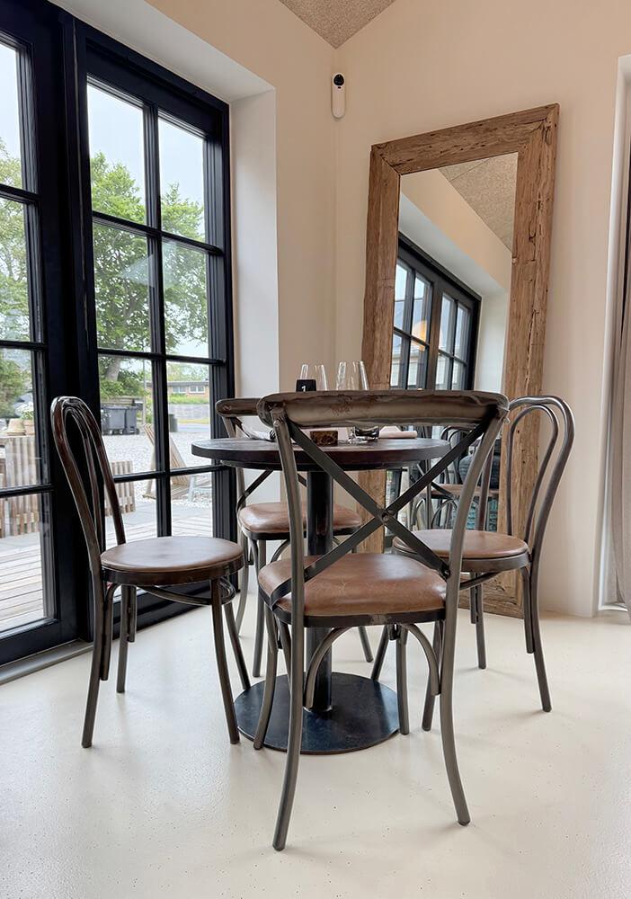 Esszimmerstuhl in Antikzink mit runden Formen für die moderne und gemütliche Ambiente. Der Stuhl passt mit unserem runden Tisch oder unseren alten Holztischen zusammen. Wenn Sie zusätzlichen Komfort wünschen, können Sie ein loses Kissen aus braunem Leder bestellen. Sie finden es hier im Shop - Artikelnummer M1407.