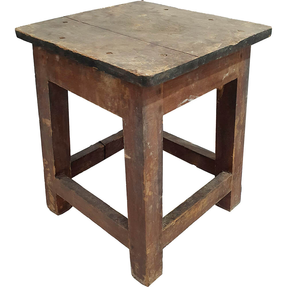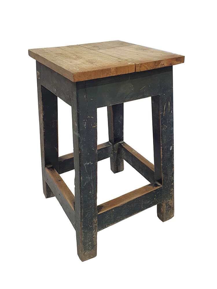 Dieser alte Holzhocker sind aus massivem Holz gefertigt und tragen alle deutliche Spuren vieler Jahre der Nutzung. Abgenutzte Oberflächen, Gebrauchsspuren, Unebenheiten sowie Variationen in Farbe und Patina prägen ihr Erscheinungsbild. Einige zeigen Reste alter Farbe, andere wirken roher im Holz, was für einen lebendigen und authentischen Ausdruck sorgt. Es kann Unterschiede in Höhe, Breite und Proportionen geben, und genau diese Verschiedenheit ist Teil des Charmes. Jeder Hocker besitzt seinen eigenen Charakter und seine eigene Geschichte. Der Hocker lassen sich vielseitig einsetzen: als zusätzliche Sitzgelegenheit, kleine Beistell- oder Pflanzentische, Nachttische oder als stimmungsvolle Elemente im Geschäft, Café oder Wohnbereich. Sie wirken sowohl einzeln als auch in Gruppen arrangiert, wobei die Variation den rohen und ursprünglichen Ausdruck unterstreicht. Eine charaktervolle Auswahl für alle, die echte Materialien, Gebrauchsspuren und Möbel mit Geschichte schätzen.