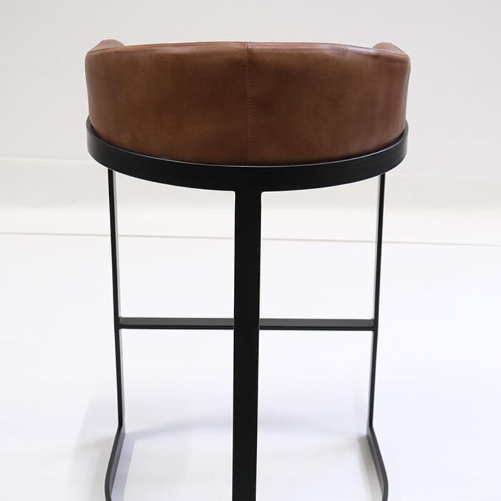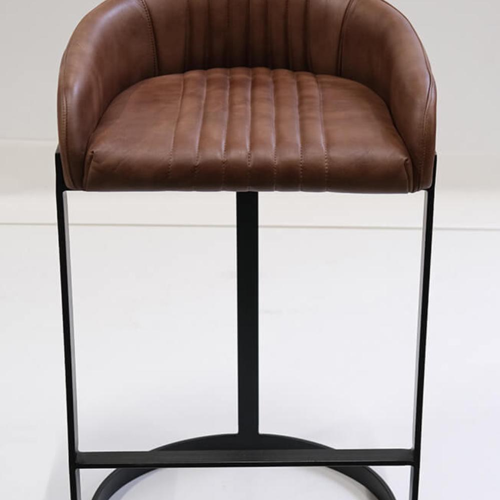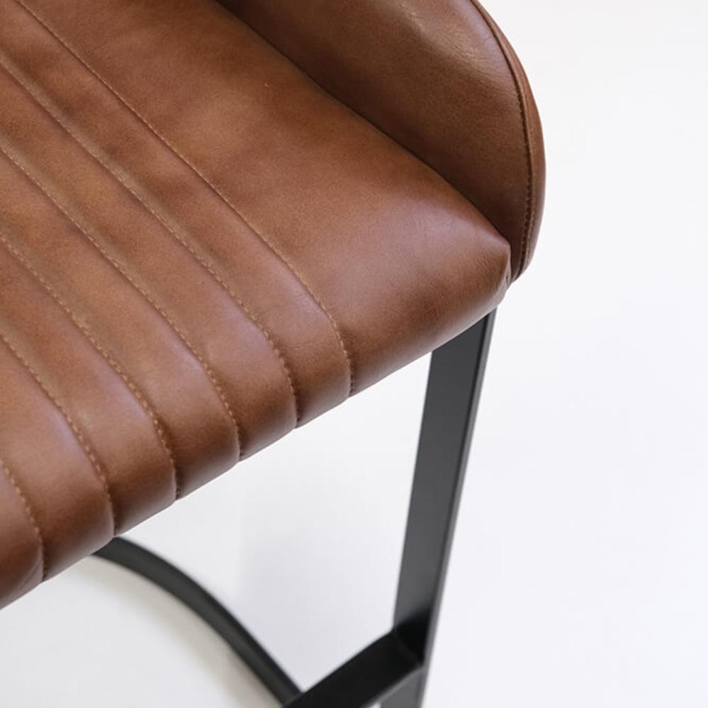 Dieser Barhocker kombiniert eine organische Form mit einem rustikalen Ausdruck. Das weiche, braune gesteppte Leder bietet Komfort und Stil, während das schwarze Metallgestell eine industriell inspirierte Note hinzufügt. Der Barhocker verfügt über eine tiefe Sitzfläche, eine niedrige Rückenlehne und eine Fußstütze, die den Komfort zusätzlich verstärken. Perfekt für die Bar oder das Café, wo Funktionalität auf Charakter und ein maskulines Aussehen trifft.