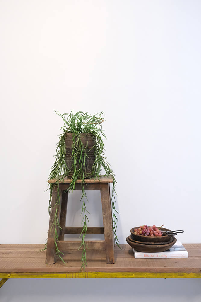 Dieser robuste Hocker aus Teakholz ist ein kleines Möbelstück mit großer Persönlichkeit. Die schräg gestellten Beine und das abgenutzte Holz zeugen von vielen Jahren treuer Dienste und verleihen dem Hocker jede Menge Charakter. Er ist schlicht in der Form, stabil gebaut und leicht zu bewegen. Nutzen Sie ihn als zusätzliche Sitzgelegenheit, Pflanzenpodest, Nachttisch oder Beistelltischchen – die Einsatzmöglichkeiten sind vielfältig, und sein Look passt sowohl in rustikale, industrielle als auch in natürlichere Einrichtungen. Jeder Hocker hat seinen ganz eigenen Ausdruck, kein Exemplar gleicht dem anderen.