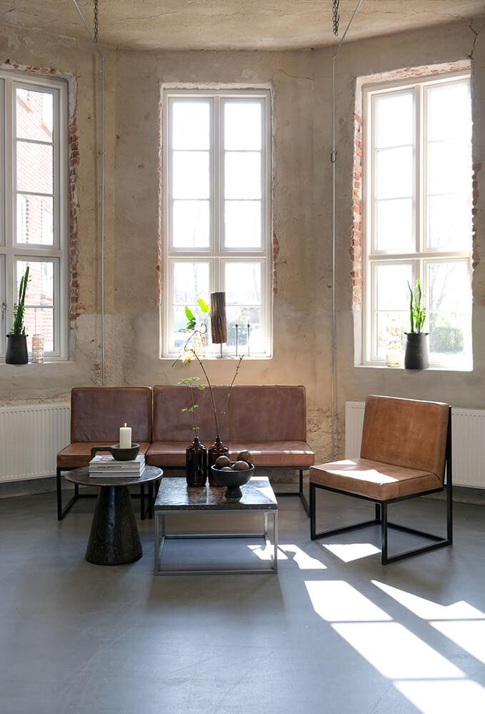 Ein elegantes und stilvolles Loungesofa mit einer wunderschönen Oberfläche aus warmem, cognacfarbenem Leder. Der schwarze Metallrahmen verleiht dem Sofa einen rohen und modernen Touch und macht es zu einem Klassiker in rustikalen und industriellen Umgebungen. Der Sitzkomfort ist erstklassig, da Sitzfläche und Rückenlehne optimalen Halt bieten. Das Leder vermittelt ein luxuriöses Gefühl und wird mit der Zeit durch eine natürliche Patina noch schöner. Das zeitlose Design des Loungesofas macht sie leicht mit anderen Möbeln kombinierbar, kann aber auch allein als Blickfang überzeugen. Perfekt für ein Café, einen Loungebereich oder als stilvolle Ergänzung für das Wohnzimmer oder den Flur zu Hause. Ein Loungesofa, das Komfort, Funktionalität und Charakter vereint.