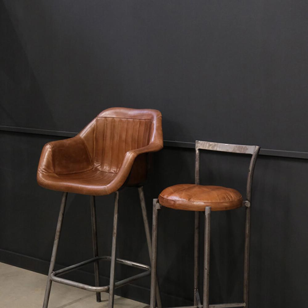 Portland Barhocker mit rundem Ledersitz
