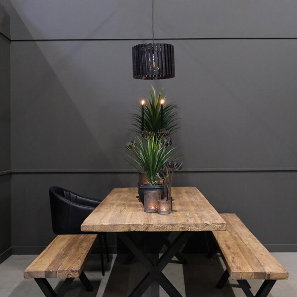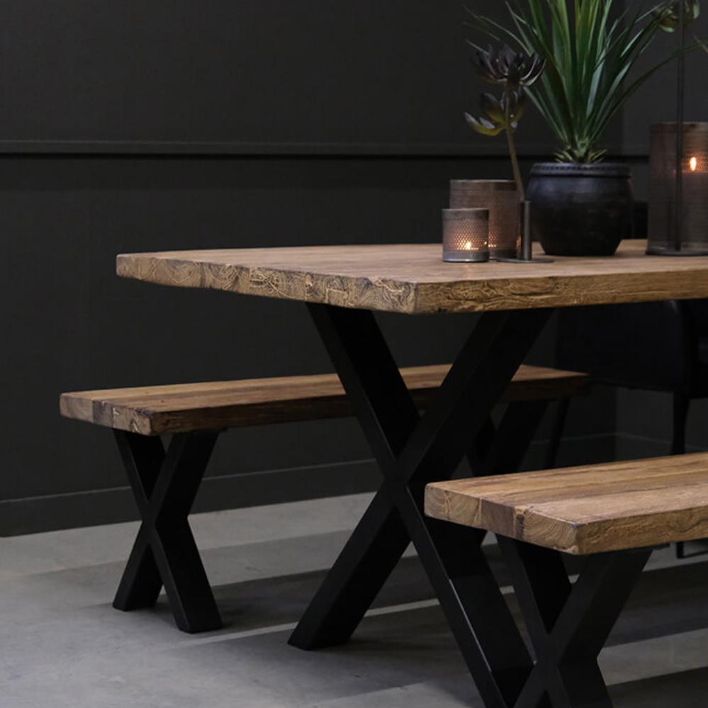 Die lange Bank aus rustikalem Holz mit einem soliden Kreuzgestell aus Eisen vereint Schönheit und Funktionalität. Diese beeindruckende Bank bietet ausreichend Sitzplatz und ist ein wunderschönes Beispiel für echte Handwerkskunst. Das rustikale Holz und das robuste Eisen-Gestell schaffen einen harmonischen Kontrast, der jedem Raum Charakter verleiht. Verwenden Sie sie als stilvollen Sitzplatz am Esstisch, im Eingangsbereich oder überall dort, wo Sie einen einzigartigen rustikalen Charme hinzufügen möchten. Unsere Bank aus rustikalem Holz ist die perfekte Kombination aus Ästhetik und Praktikabilität. Die Dicke der Platte ist ca. 4,5 cm. Einen passenden Tisch finden Sie unter der Artikelnummer: M03132, sowie eine passende kleinere Bank unter: M1854