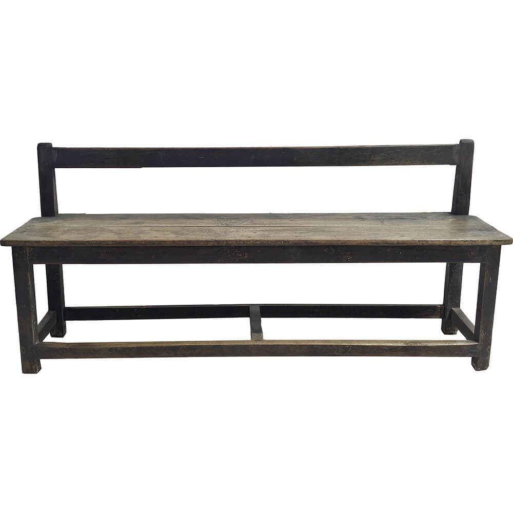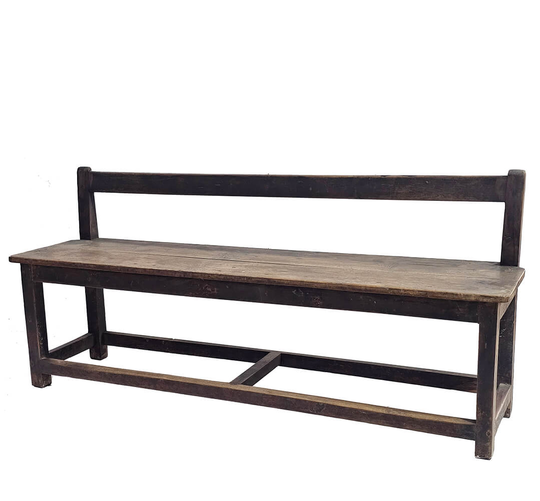 Schlichtes Design, ehrliche Materialien und jede Menge Geschichte. Diese alte Holzbank hat einen charmant abgenutzten Look und eine niedrige Rückenlehne, die ihr eine leichte und unaufdringliche Ausstrahlung verleiht. Sie ist solide gebaut und zeugt von einer Zeit, in der Dinge für die Ewigkeit gemacht wurden. Ideal im Eingangsbereich, als zusätzliche Sitzgelegenheit am Esstisch oder als Hingucker im Laden. Die Bank lädt dazu ein, eine Pause einzulegen, sich die Schuhe zu binden oder einfach einen ruhigen Moment zu genießen. Ein Möbelstück mit Charakter, das sich einfügt, ohne laut zu sein.