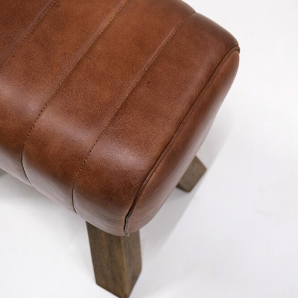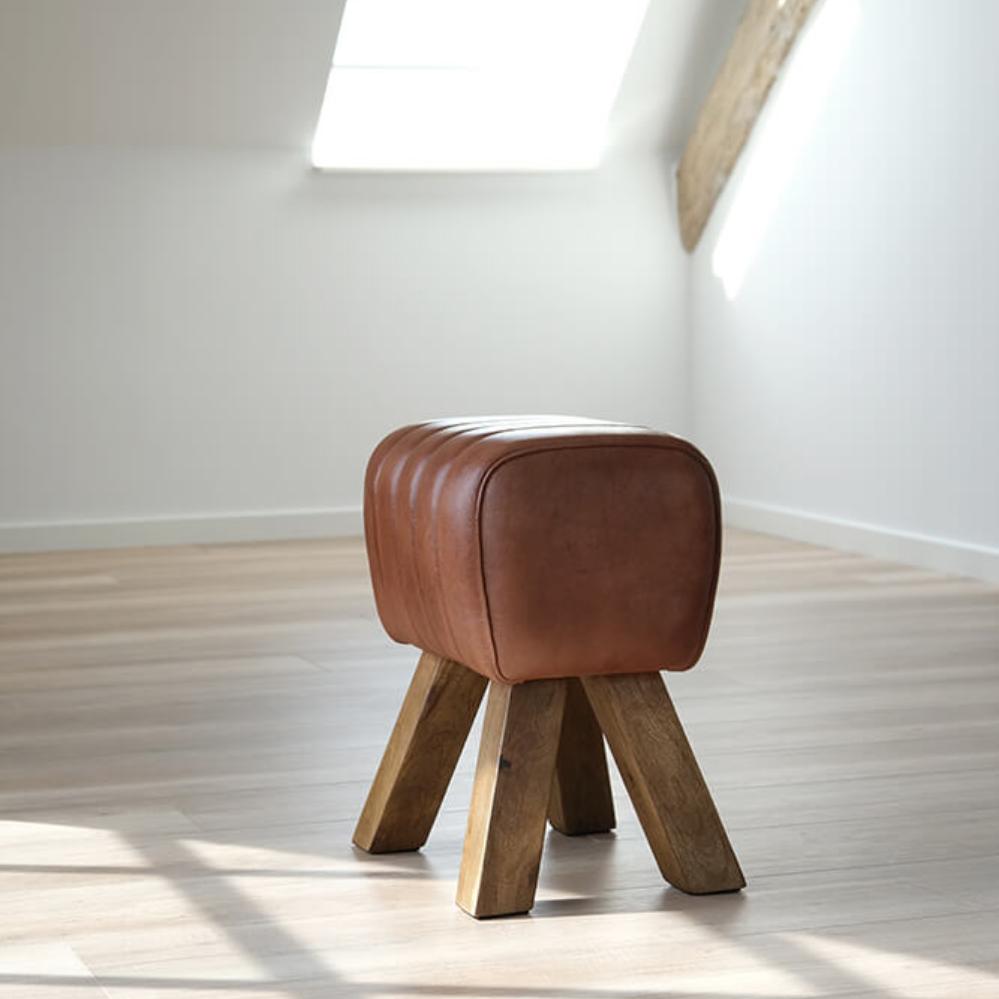 Dieser kleine Wilma-Hocker, inspiriert vom klassischen "Turnbock," hat ein elegantes, gestepptes braunes Leder und massive Holzbeine. Der Bock strahlt einen coolen und authentischen "Old School"-Charme aus und verleiht Ihrer Einrichtung einen rustikalen und rauen Akzent. Die stabilen Holzbeine sorgen für Stabilität und Langlebigkeit, während das weiche Leder in warmem Braun Komfort und Eleganz bietet. Perfekt als praktischer Hocker im Flur, stilvolles Detail im Wohnzimmer oder als einzigartige Sitzgelegenheit im Geschäft oder Café. Eine kleine, aber markante Ergänzung, die Funktionalität und Charakter vereint.