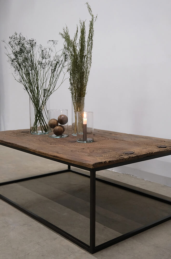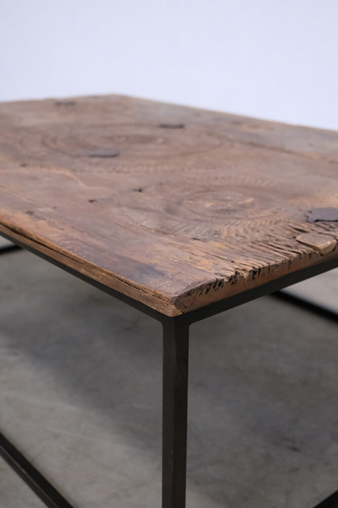 Ein Couchtisch mit Geschichte und viel Charakter. Die einzigartige Tischplatte besteht aus einer alten Tür mit wunderschönen Schnitzereien und einer rustikalen Patina, die ihre eigene Geschichte erzählt. Das klarlackierte Eisengestell verleiht dem Tisch einen modernen Touch und sorgt für Stabilität. Perfekt für alle, die rustikales, Vintagedesign mit Authentizität und Charme lieben.