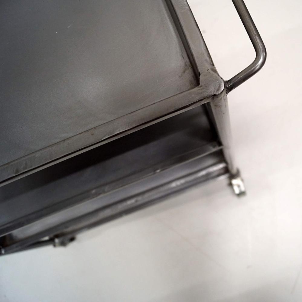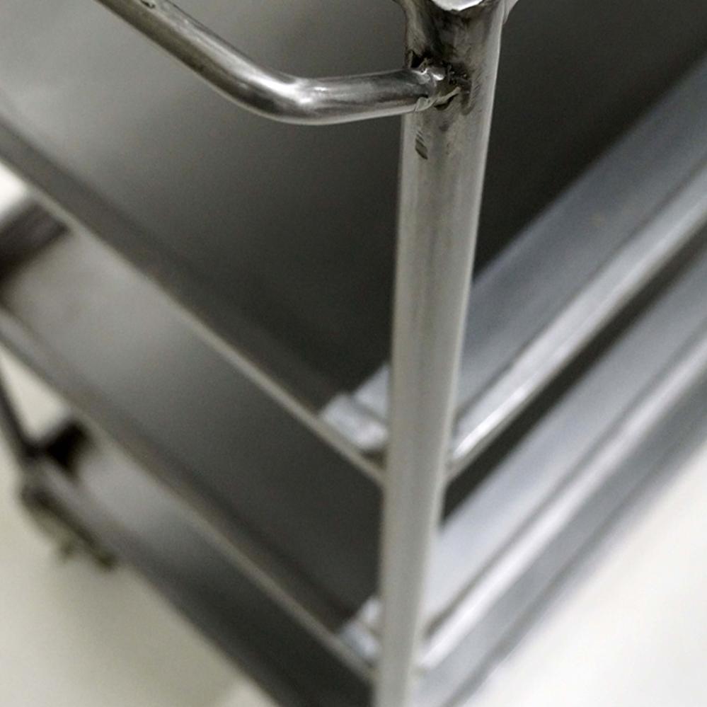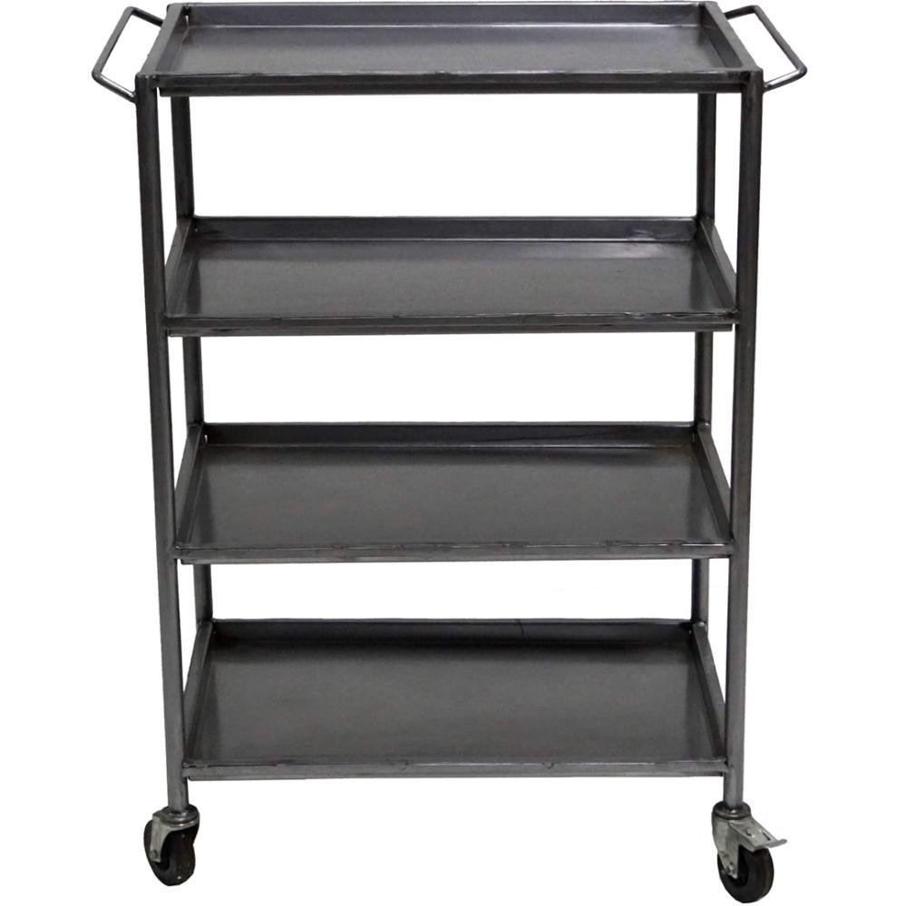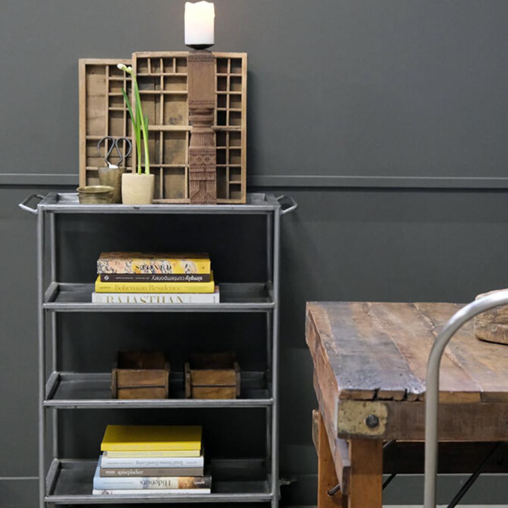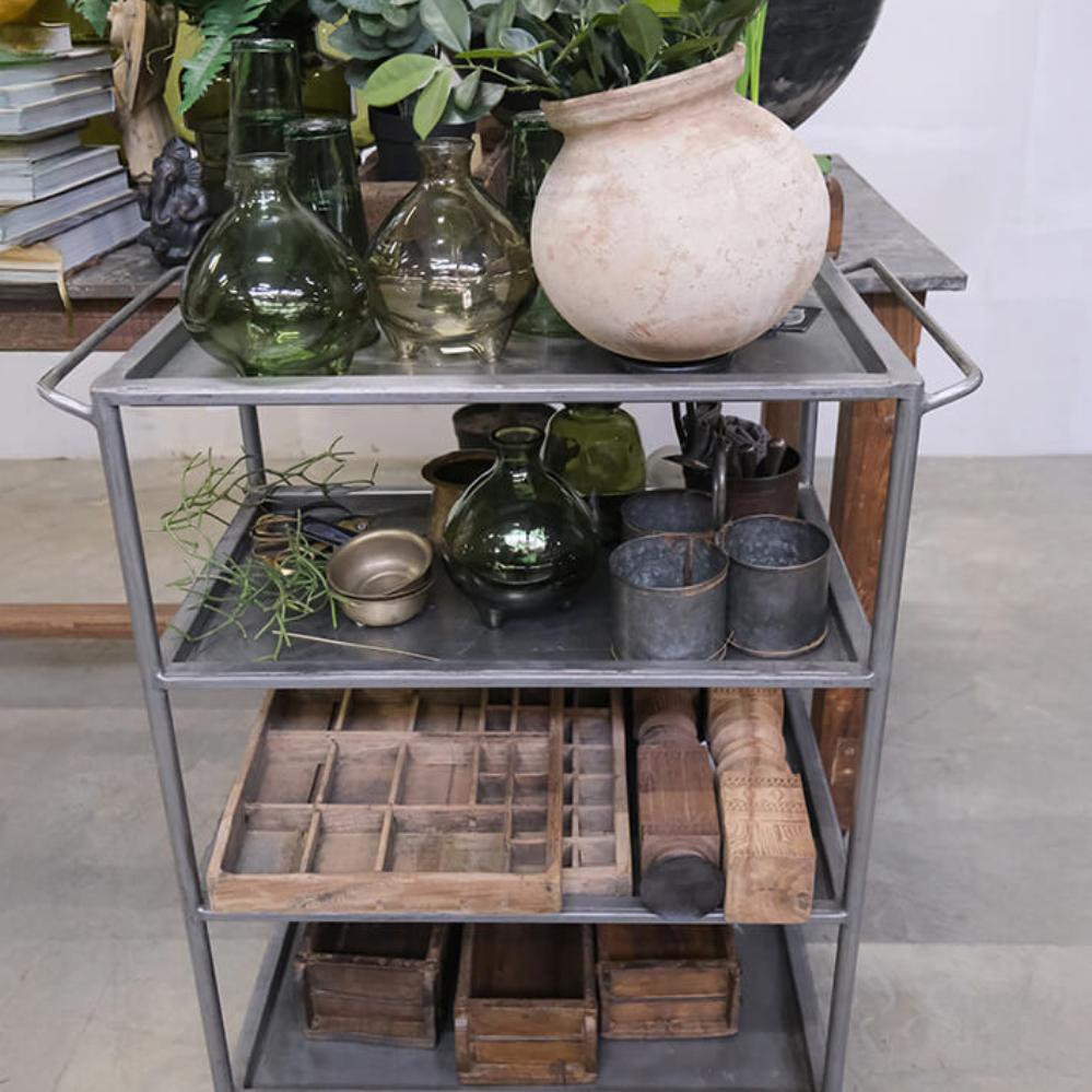 Dieser robuste und praktische Rollwagen ist aus massivem Eisen gefertigt und mit vier geräumigen Fächern ausgestattet, die viel Platz für Aufbewahrung oder Präsentation bieten. Die beiden Griffe an den Seiten erleichtern das Umstellen, während die vier schwenkbaren Rollen volle Flexibilität ermöglichen. Ideal für Küche, Wohnzimmer, Geschäft oder Werkstatt. Der industrielle Stil mit der dunklen Metalloberfläche lässt sich leicht mit sowohl modernen als auch rustikalen Einrichtungen kombinieren. Verwenden Sie ihn als Barwagen, Pflanzenständer, kreative Arbeitsstation oder als mobiles Ausstellungsstück. Ein stabiles und funktionales Möbelstück, das ebenso praktisch wie dekorativ ist.