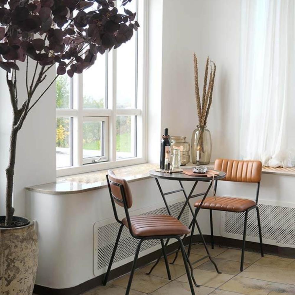 Kleiner, schöner Eisenbistrotisch - klarlackiert. Der Tisch hat ein stilvolles und praktisches Design, und die rustikale Oberfläche ist bewunderungswürdig und aussergewöhnlich. Klappbar.