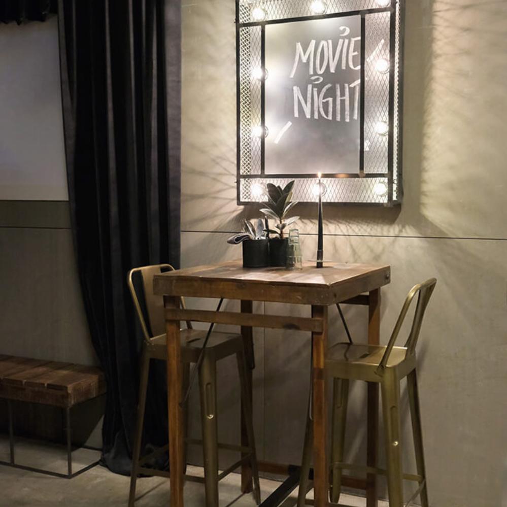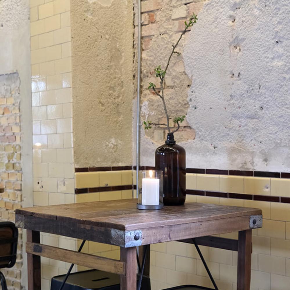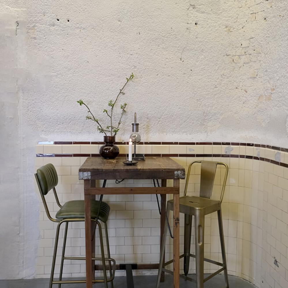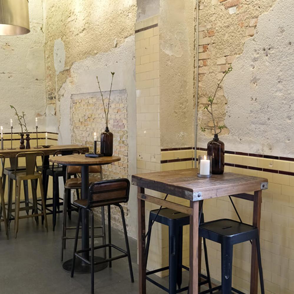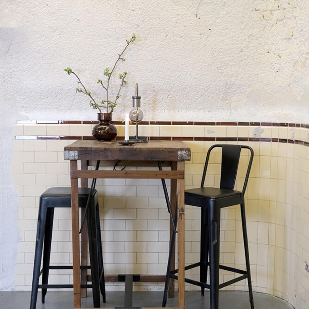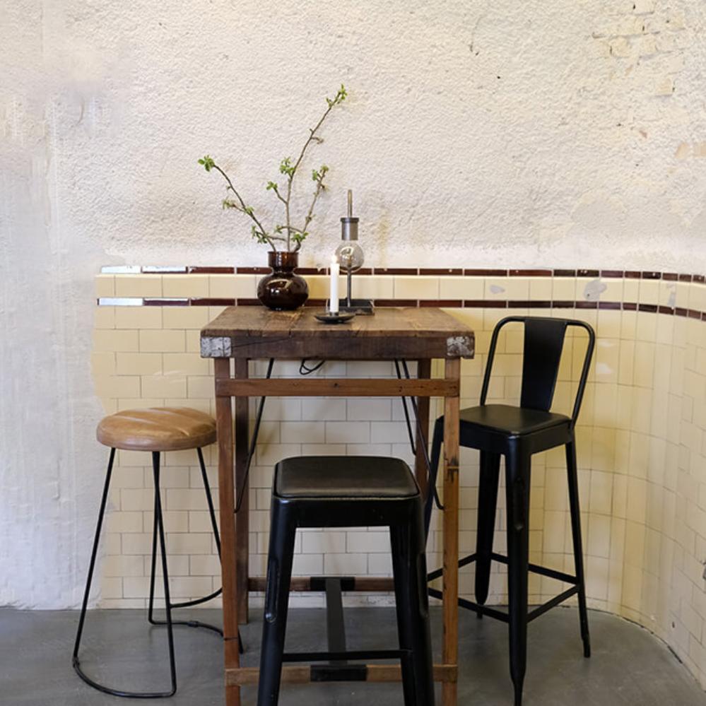 Bartisch aus Holz - quadratisch. Für die individuelle Einrichtung. Der Tisch ist aus Altholz hergestellt, und die unebene Platte macht jeden Tisch einzigartig. Unsere vielfalt von Barhockern lassen sich zu diesem Bartisch verwenden.