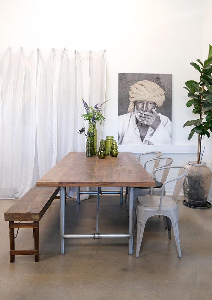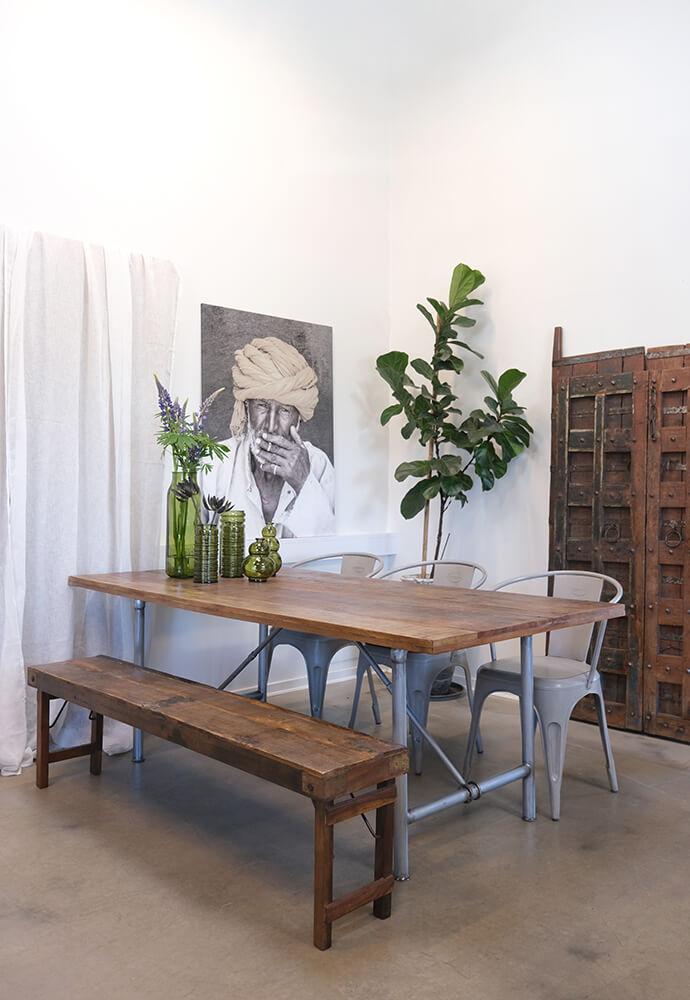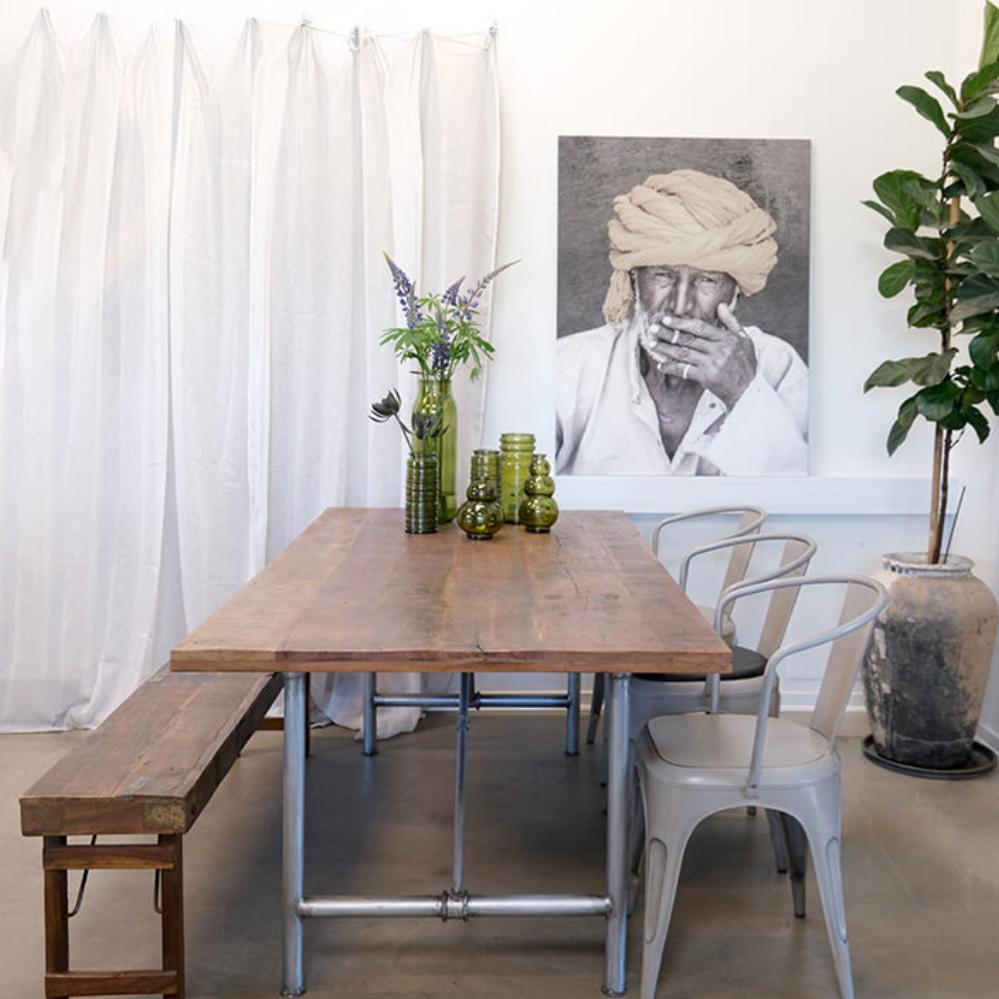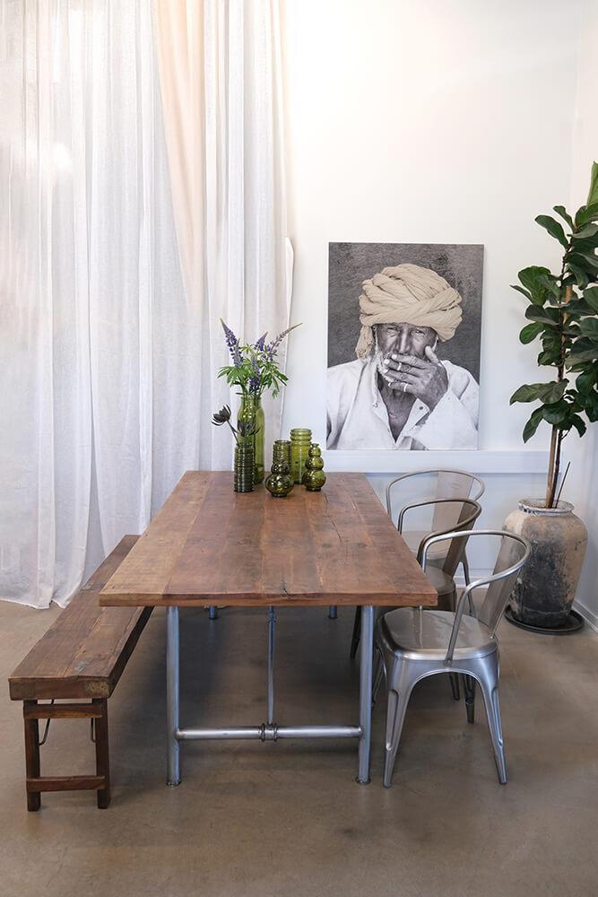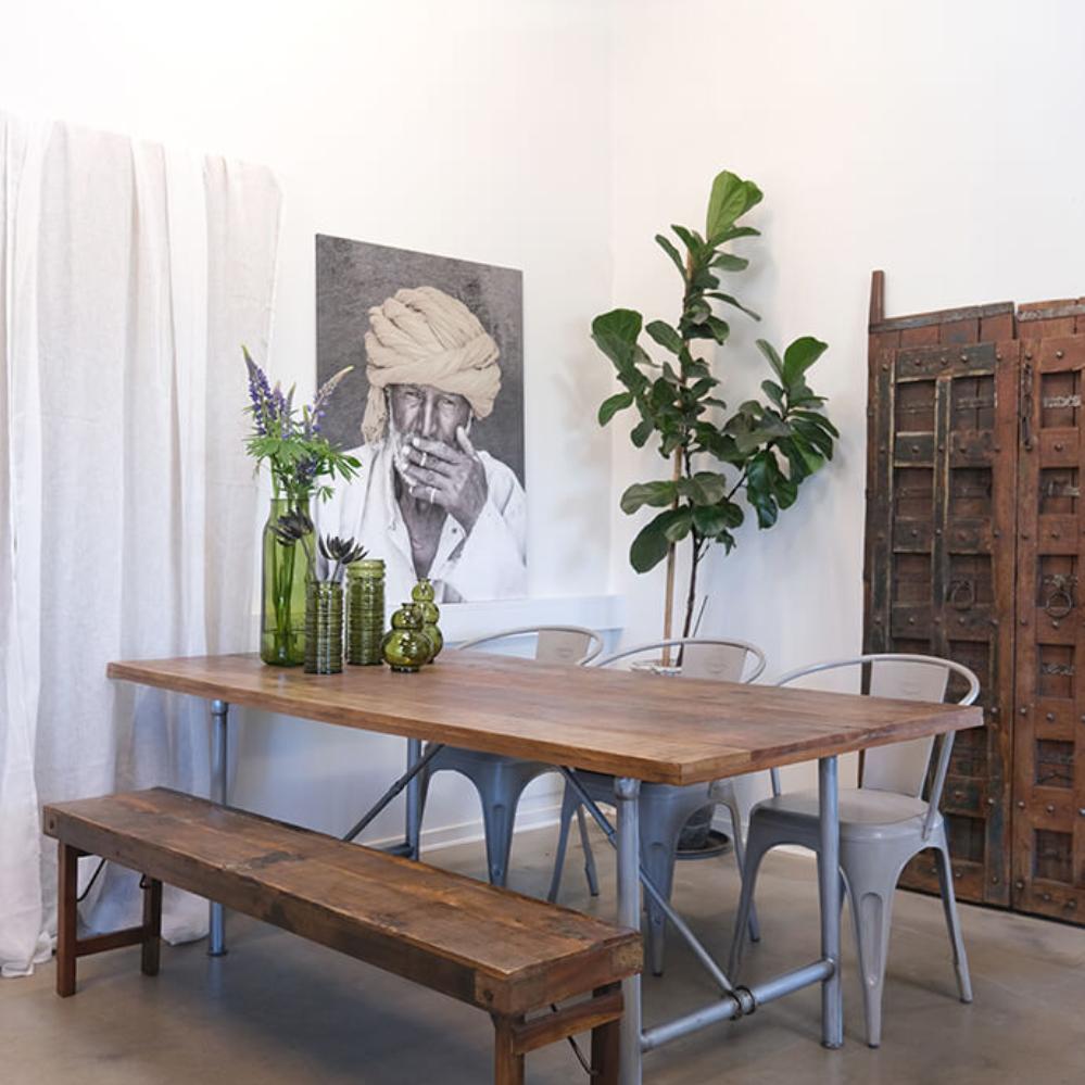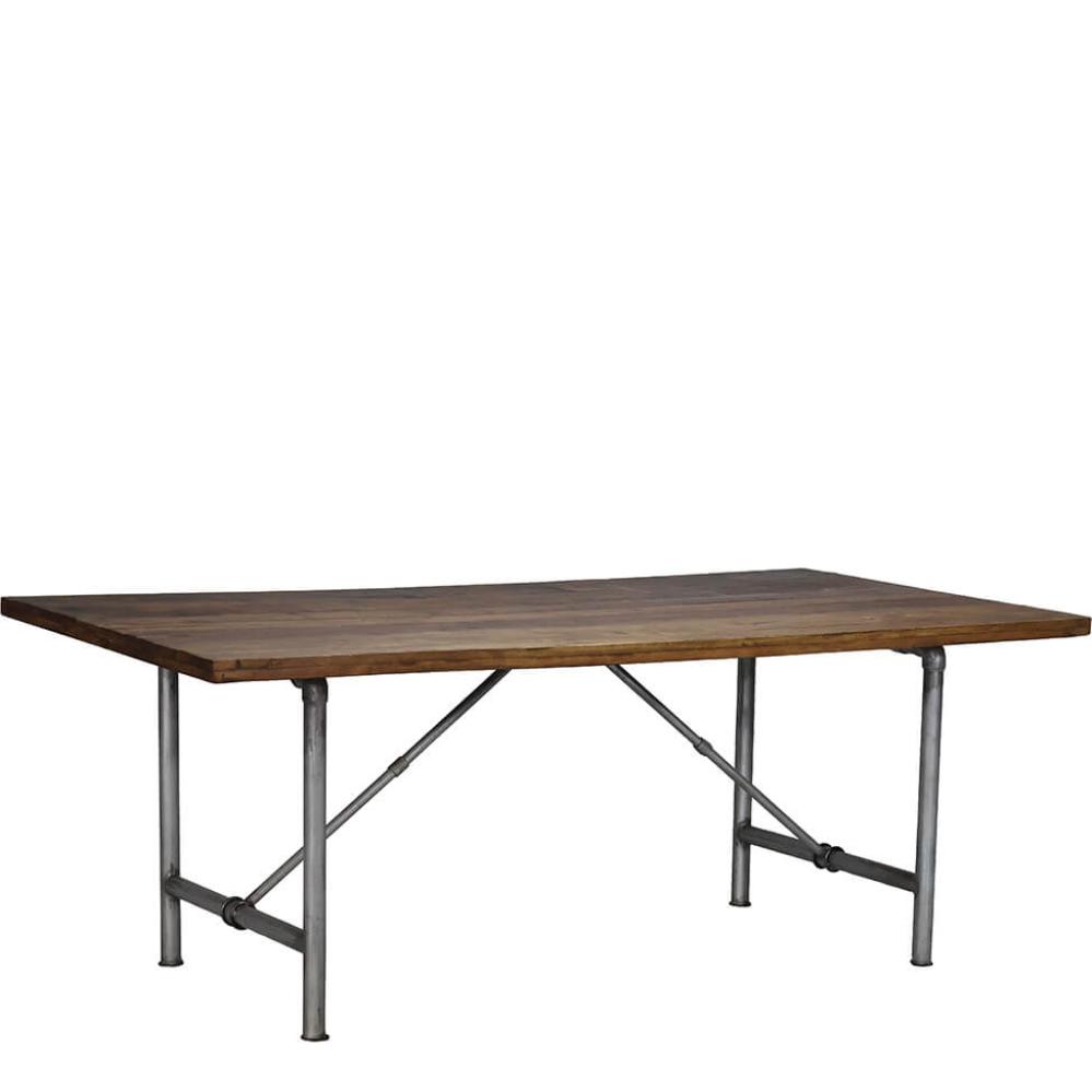 Dieser Esstisch ist aus Altholz gefertigt und wird von robusten Eisenrohren gestützt, die ihm einen rauen, industriellen Look verleihen. Das Holz hat eine natürliche Patina, die den authentischen Charakter des Tisches hervorheben und Charme in Ihre Küche oder Ihr Restaurant bringt. Die rustikalen Eisenrohrbeine tragen zur Stabilität des Tisches bei und unterstreichen sein raues und maskulines Design. Ideal für moderne und vintage-inspirierte Einrichtungen, in denen er als rustikaler und funktionaler Mittelpunkt dient.