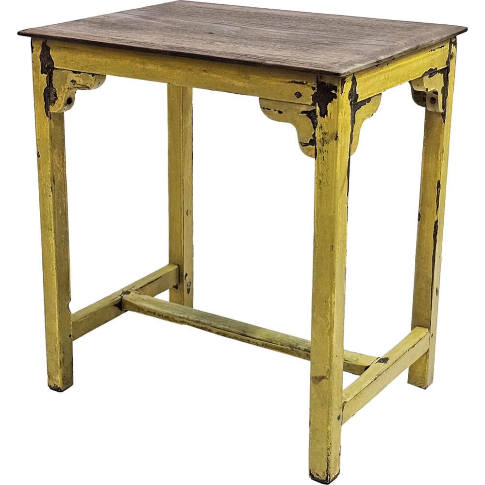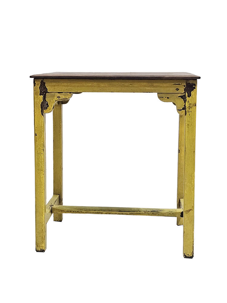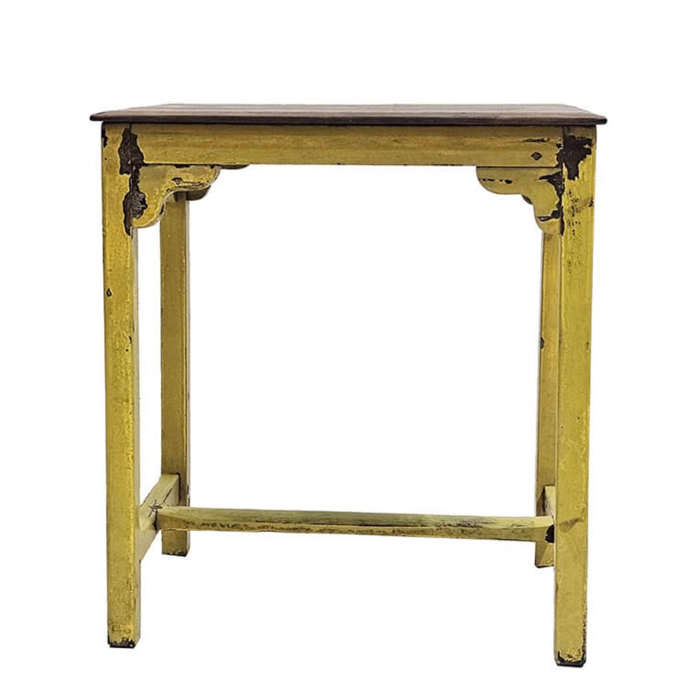 Dieser charmante kleine Beistelltisch bringt Farbe und Persönlichkeit in den Raum. Er ist aus Holz gefertigt und in einem schönen, abgenutzten Gelb gestrichen, das ihm einen authentischen Vintage-Look mit viel Charakter verleiht. Der warme Farbton und die natürliche Patina erzählen die Geschichte eines Möbelstücks mit Charakter. Verwenden Sie ihn als Nachttisch, Pflanzenständer oder als dekoratives Element im Wohnzimmer, Flur oder Café. Die schlichte Konstruktion mit den hübschen Schnitzereien unter der Tischplatte verleiht dem Tisch eine handwerkliche Note, die sowohl zu rustikalen als auch zu boho-inspirierten Einrichtungen passt. Ein einzigartiges Möbelstück, das Ihrer Einrichtung Charme und einen Hauch von Sonnenschein verleiht.