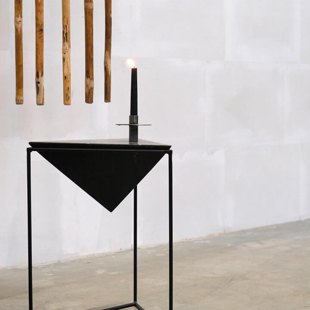 Schlichter Beistelltisch mit toller und einzigartiger Pyramidenform. Der Rahmen ist aus Eisen und die Platte aus schwarzem/weißem Marmor. Ein super nützlicher und praktischer Beistelltisch, der in jedem Interieur zum Hingucker wird.