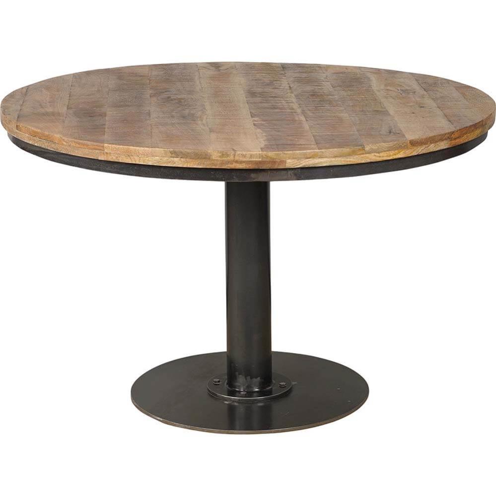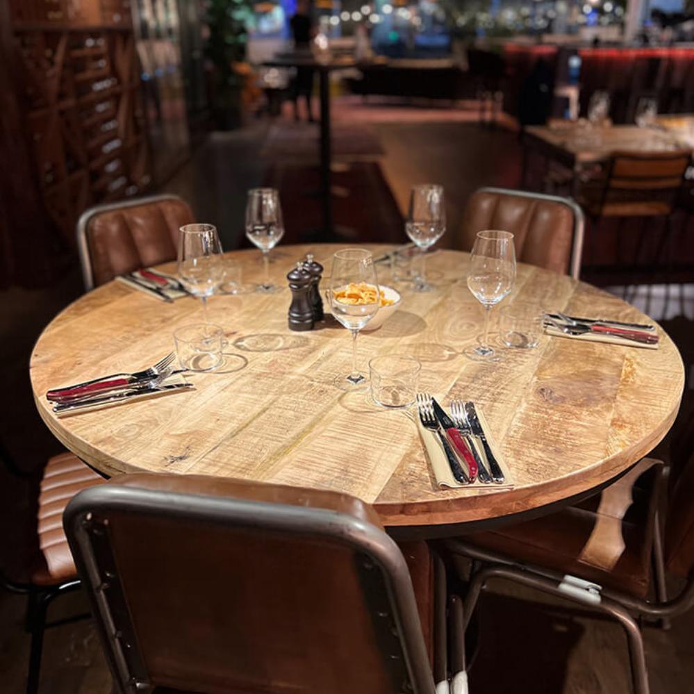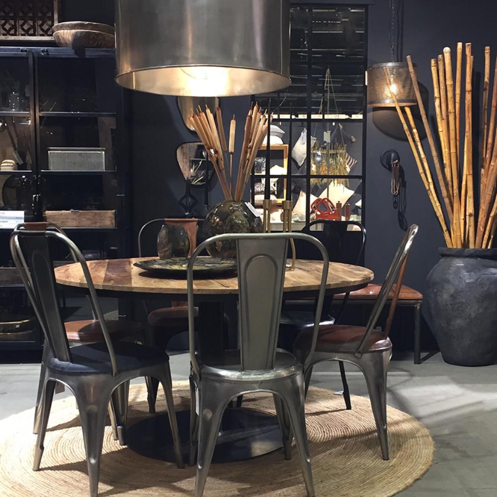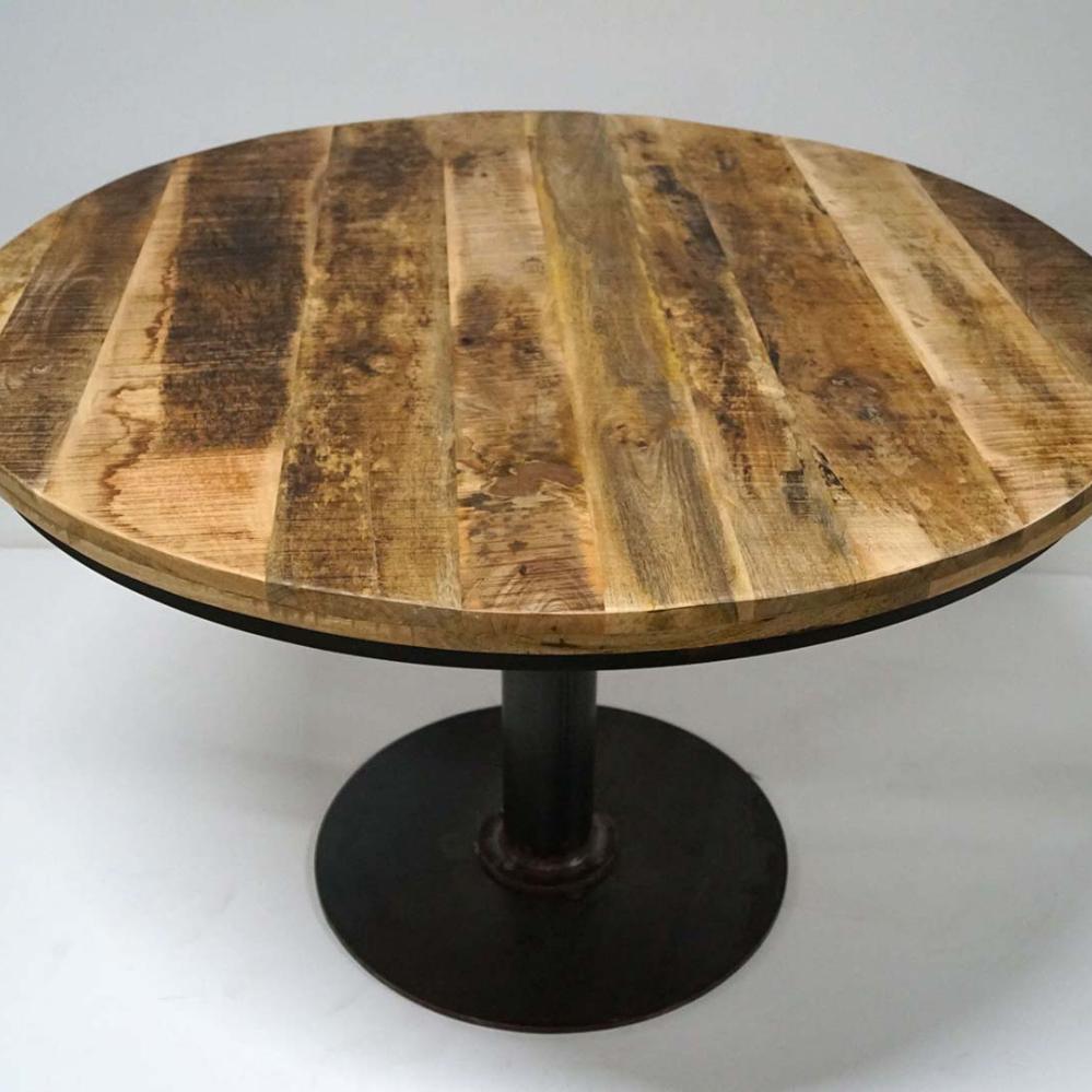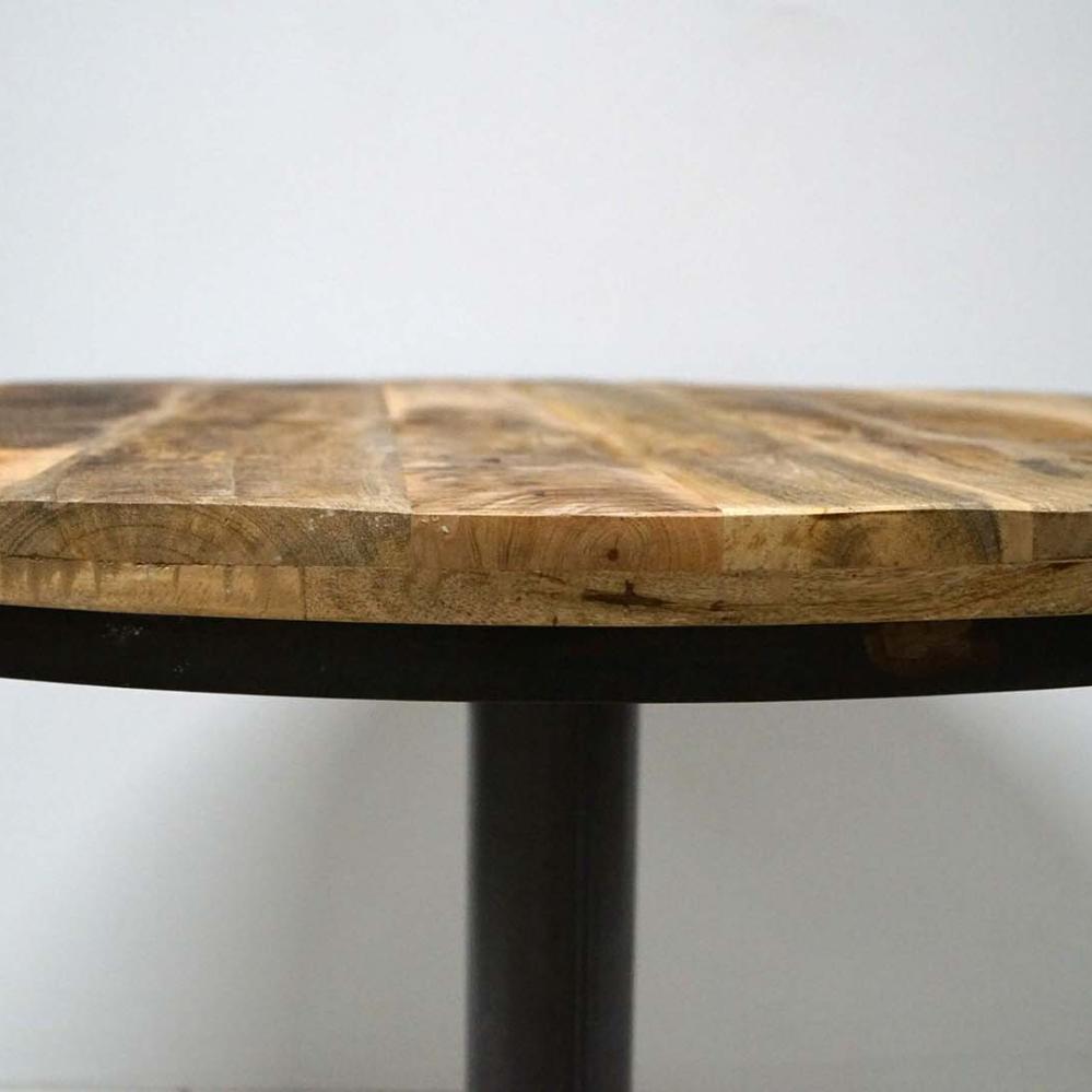 Dieser runde Esstisch aus massivem Mangoholz hat eine rustikale und raue Optik mit einer schönen, natürlichen Holzmaserung. Die Tischplatte ruht auf einem stabilen eisenfarbenen Metallgestell, das für Stabilität sorgt und einen industriellen Touch verleiht. Mit Platz für bis zu 6 Personen eignet sich der Tisch perfekt für gemütliche Mahlzeiten und gesellige Abende. Die Höhe vom Boden bis zur Unterkante beträgt ca. 70,5 cm und bietet ausreichend Beinfreiheit. Ideal für Restaurants, Cafés oder Wohnräume, in denen Robustheit und zeitloses Design gefragt sind.