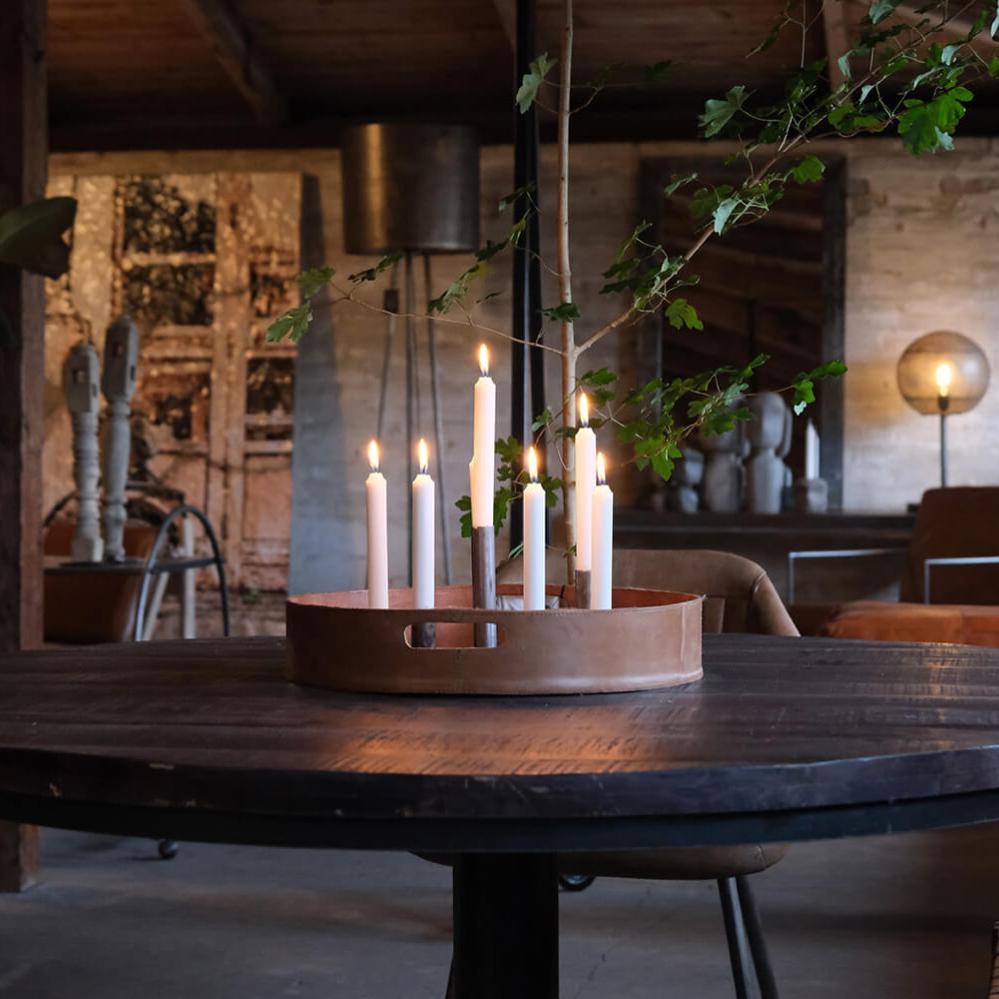 Dieser runde Esstisch aus schwarzlackiertem, massivem Mangoholz vereint Stabilität mit einem stilvollen, industriellen Look. Die dunkle Tischplatte ruht auf einem stabilen Metallfuß, der für eine solide Basis und einen modernen Look sorgt. Mit Platz für bis zu 8 Personen ist der Tisch ideal für gesmütliche Abende und gemeinsame Mahlzeiten. Die Höhe vom Boden bis zur Unterkante beträgt ca. 70,5 cm und bietet ausreichend Beinfreiheit. Eine perfekte Wahl für Restaurants und private Wohnräume, in denen rohe Materialien und zeitloses Design harmonisch zusammenkommen.