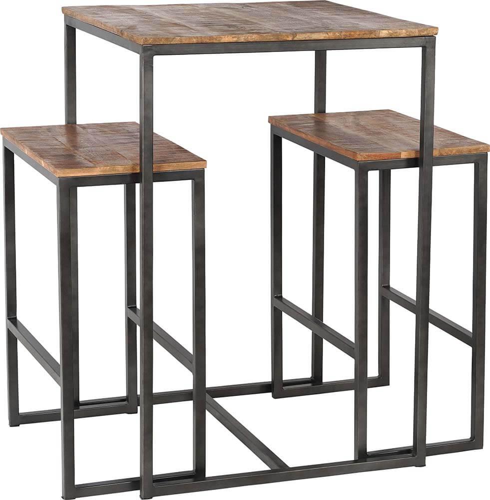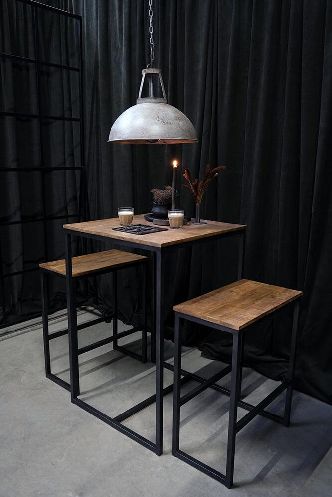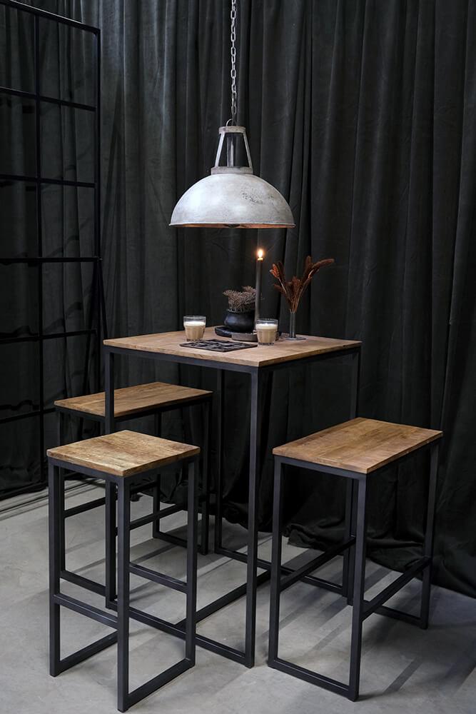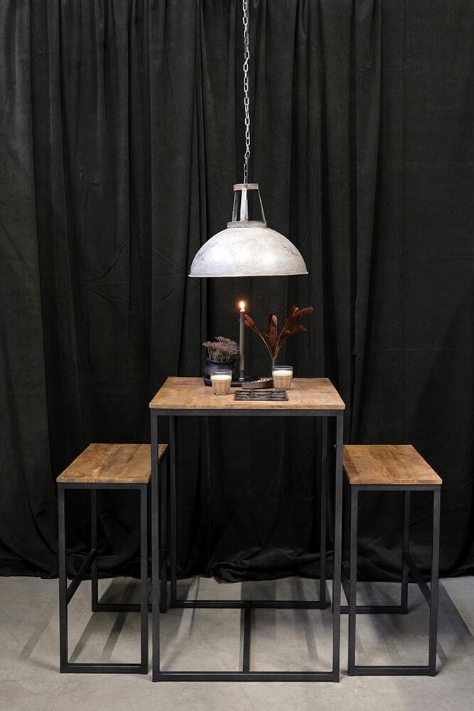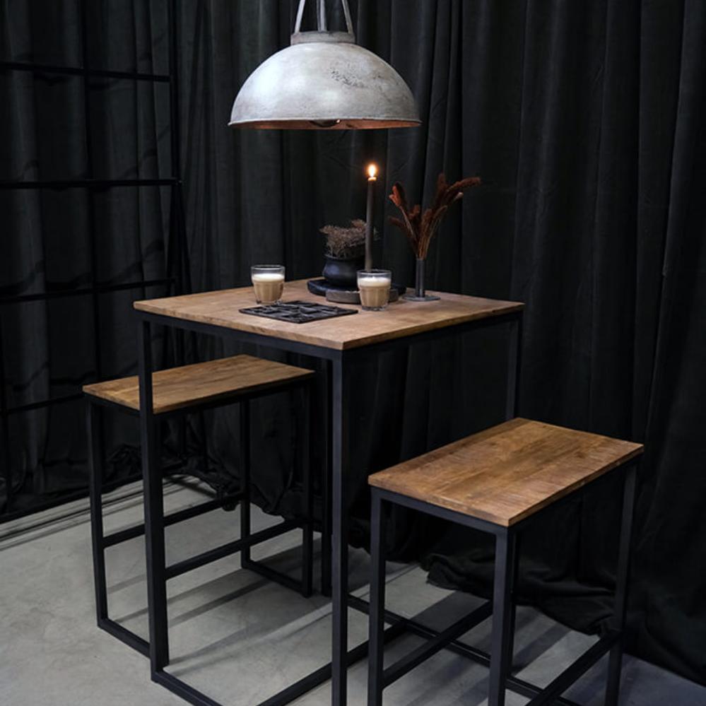 Dieses hohe Tisch-Bank-Set kombiniert die rustikale Robustheit von klarlackiertem Eisen mit dem warmen, natürlichen Ton von Mangoholz und schafft dadurch einen rustikalen, industriellen Look. Der Tisch und die beiden Bänke sind in einem einfachen und funktionalen Stil gestaltet, wobei das schlichte Metallgestell die massiven Holzplatten stützt. Dieses Set ist ideal für kleine Räume, in denen es eine gemütliche Essecke mit Charakter schafft. Dank seiner kompakten Größe eignet es sich perfekt für Barbereiche oder kleine Küchen, in denen der Platz begrenzt ist, der Stil aber nicht zu kurz kommen soll. Die Stühle haben die Maße H:76 x B:60 x T:34 cm. Das Set kann auch mit einem oder zwei passenden Barhockern ergänzt werden. Suchen Sie bitte nach „Esbjerg Barhocker“.