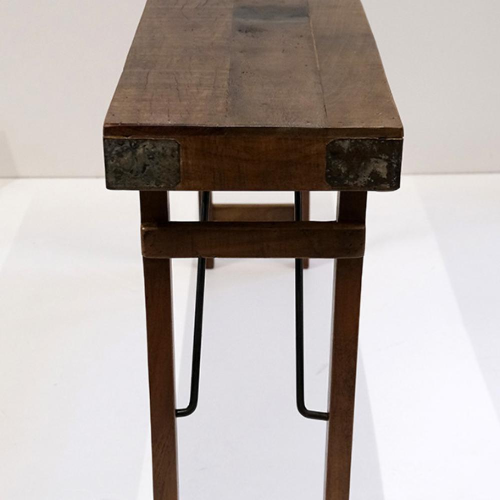 Feine und schmale Konsole aus Altholz. Dieser exquisite Tisch ist vielseitig einsetzbar und kann an vielen Stellen in Ihrer Einrichtung verwendet werden, wie hinter dem Sofa, als praktischer Abstelltisch oder in einem Eingangsbereich. Hergestellt aus Altholz, strahlt der Pramod-Tisch einen authentischen und rustikalen Charme aus. Sein schlichtes Design macht ihn ideal für kleinere Räume oder als diskrete Aufbewahrungslösung, und mit seinen klappbaren Beinen kann er auch vorübergehend verstaut werden. Lassen Sie den Pramod-Konsolentisch das funktionale und stilvolle Element in Ihrer Einrichtung sein.