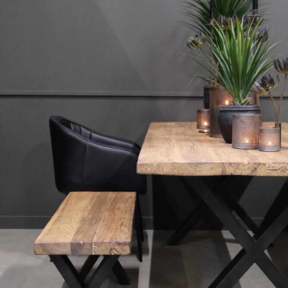 Schaffen Sie einen beeindruckenden und rustikalen Essbereich mit unserem großen Esstisch aus Holz, der ein stilvoller Kreuzgestell aus Eisen aufweist. Dieser Tisch ist sowohl robust als auch stilvoll und bietet ausreichend Platz, um Familie und Freunde für unvergessliche Mahlzeiten zu versammeln. Die Kombination aus Holz und Eisen verleiht Ihrem Essbereich einen einzigartigen und zeitlosen Charme. Verwandeln Sie Ihr Zuhause oder Ihr Restaurant in einen gemütlichen Treffpunkt mit diesem prächtigen Esstisch. Die Dicke der Tischplatte ist ca. 5 cm. Finden Sie eine passende Bank unter Artikelnummer: M1853 (Länge: 230 cm) og M1854 (Länge: 115 cm)
