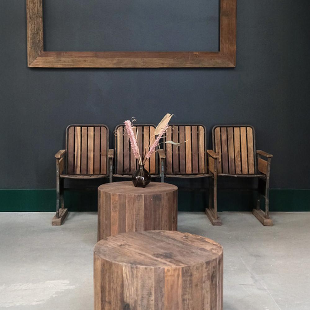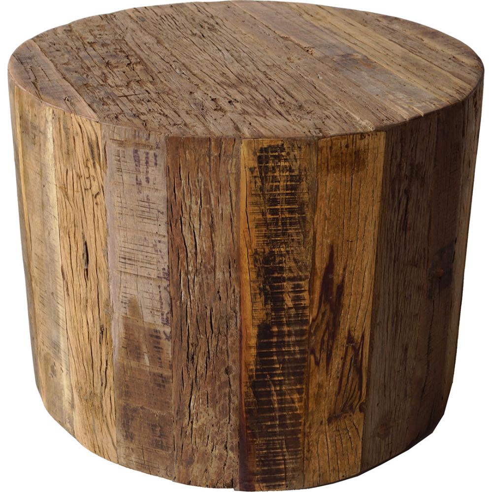 Dieses zylindrische Möbelstück bietet einen groben und skulpturalen Look. Der Tisch besteht aus Altholz und hat drei Rollen an der Unterseite, wodurch er sich leicht bewegen lässt. Der Tisch ist sehr vielseitig und kann als Hocker, Lampentisch oder Couchtisch verwendet werden. Das bei der Herstellung verwendete raue, naturbelassene Altholz verleiht diesem Beistellmöbel eine rustikale Optik und passt sowohl zum nordischen als auch zum maskulinen Einrichtungsstil.