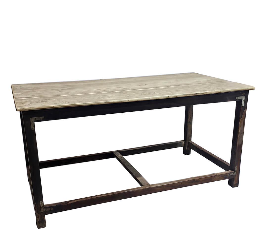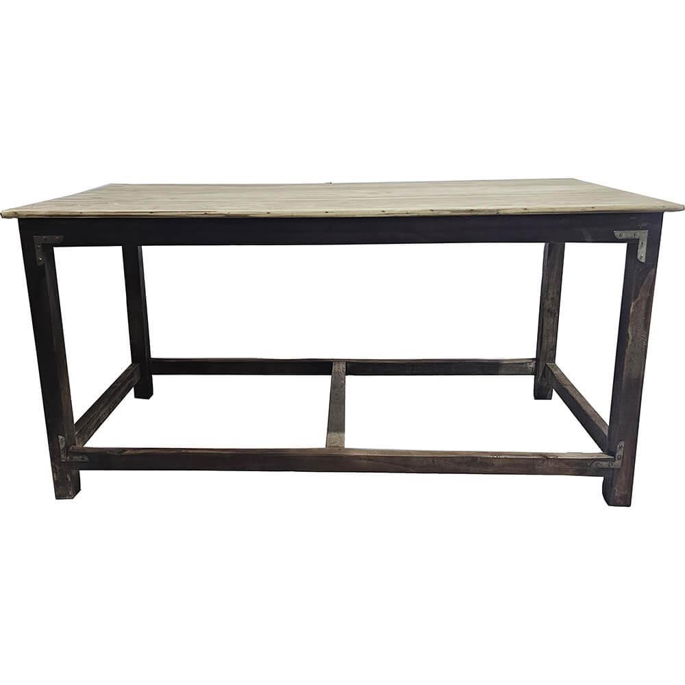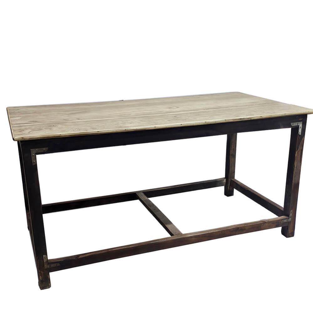 Dieser alte Tresen vereint das Raue mit dem Schlichten in einem rustikalen Design. Das dunkle, robuste Holzgestell in Kombination mit der helleren Tischplatte aus Naturholz schafft eine perfekte Balance zwischen Patina und Funktionalität. Sichtbare Metallbeschläge und Verbindungen verleihen dem Möbelstück einen dezenten Industrie-Look, ohne zu dominant zu wirken. Ideal als Präsentationstisch im Laden oder als Arbeitsstation im Café – hier zählt sowohl das Aussehen als auch der praktische Nutzen. Auch im privaten Bereich eignet sich der Tresen als Kücheninsel oder als Arbeitstisch, je nach Einrichtung. Ein Möbelstück mit Charakter, Ecken und Kanten – und vielen Einsatzmöglichkeiten. Tipp: Wenn Sie große Rollen darunter montieren, lässt er sich ganz einfach bewegen.