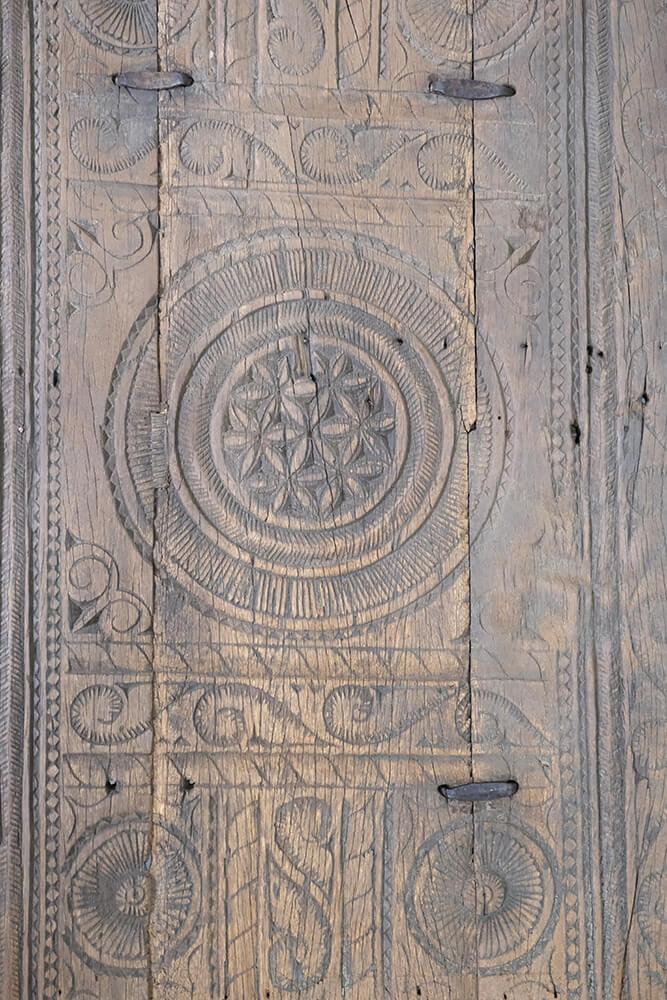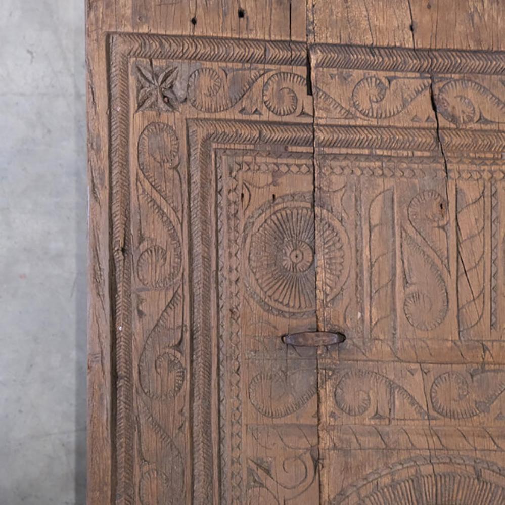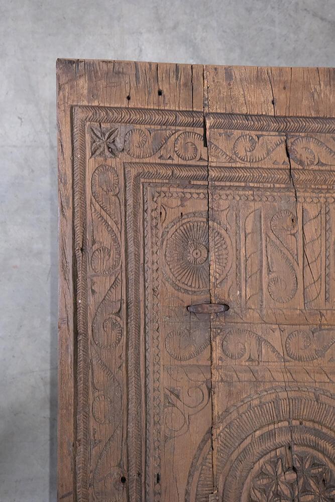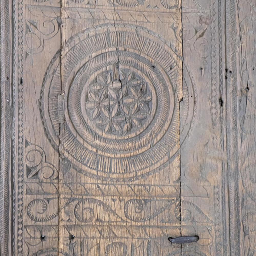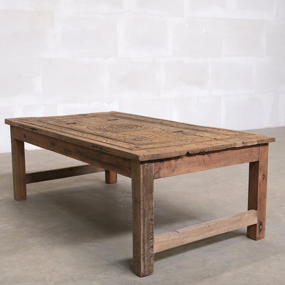Dieser einzigartige Couchtisch ist ein Stück rustikaler und authentischer Handwerkskunst. Die Tischplatte ist mit wunderschönen Schnitzereien verziert, die dem Möbelstück eine markante und charaktervolle Ausstrahlung verleihen. Das Holz zeigt eine bezaubernde natürliche Patina und Gebrauchsspuren, die Geschichten aus seinem früheren Leben erzählen. Sein robustes Design und die handwerklichen Details machen den Tisch ideal für Einrichtungen, die Charme und Authentizität suchen. Perfekt als Mittelpunkt im Wohnzimmer oder als dekoratives Element in einem Ambiente, das Vintage und einzigartige Charakter schätzt.