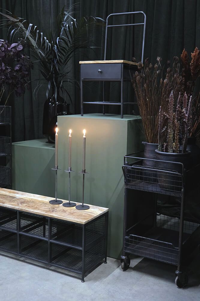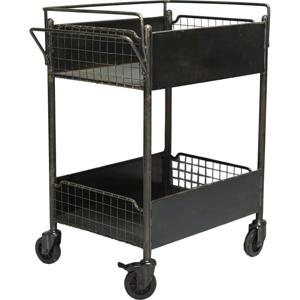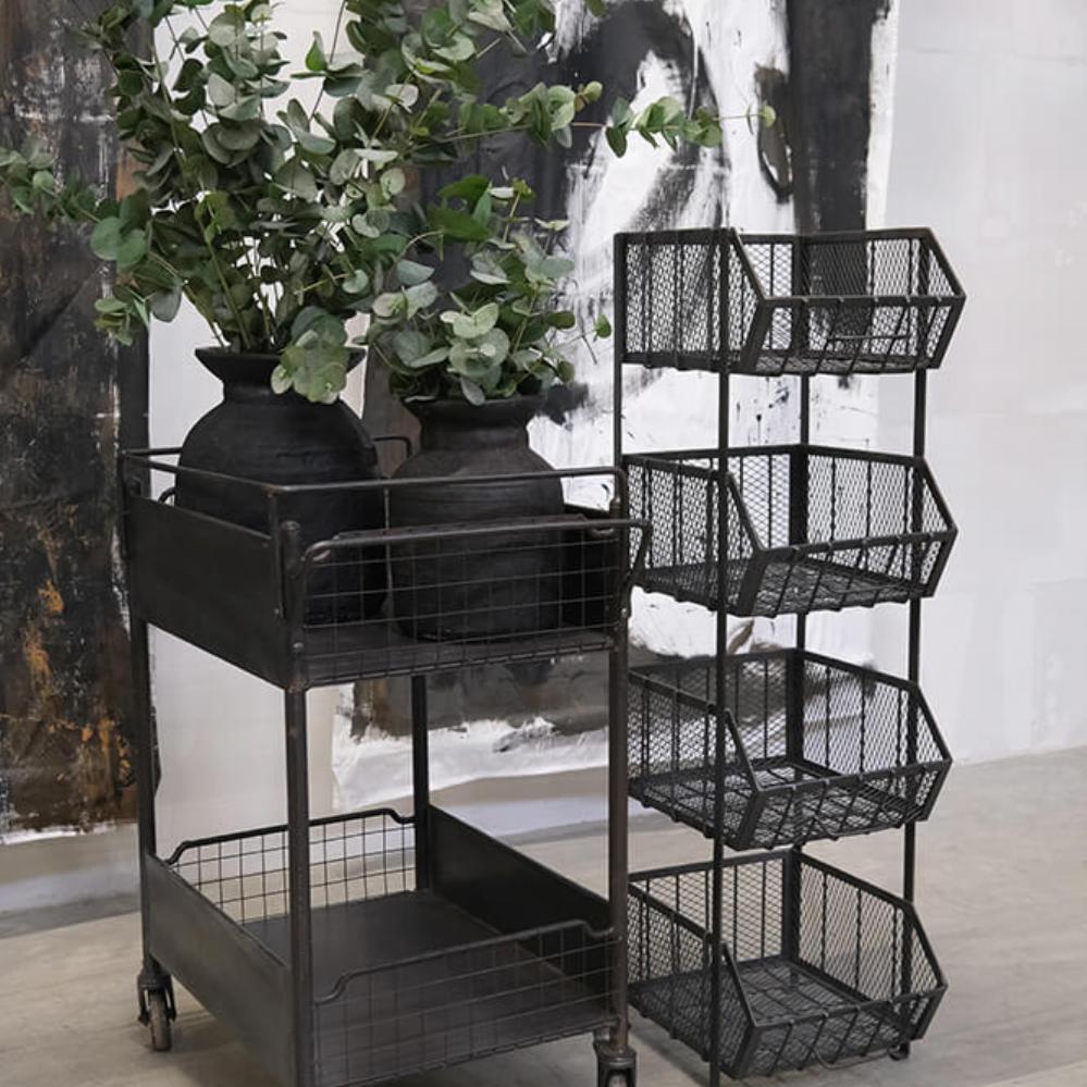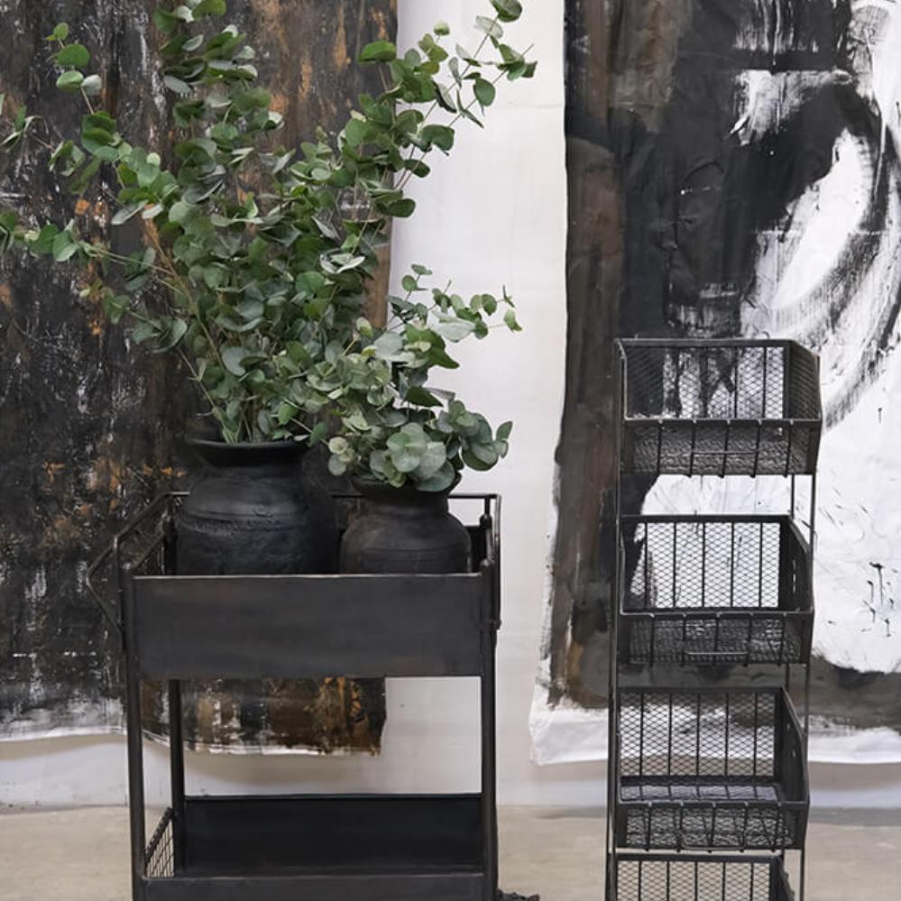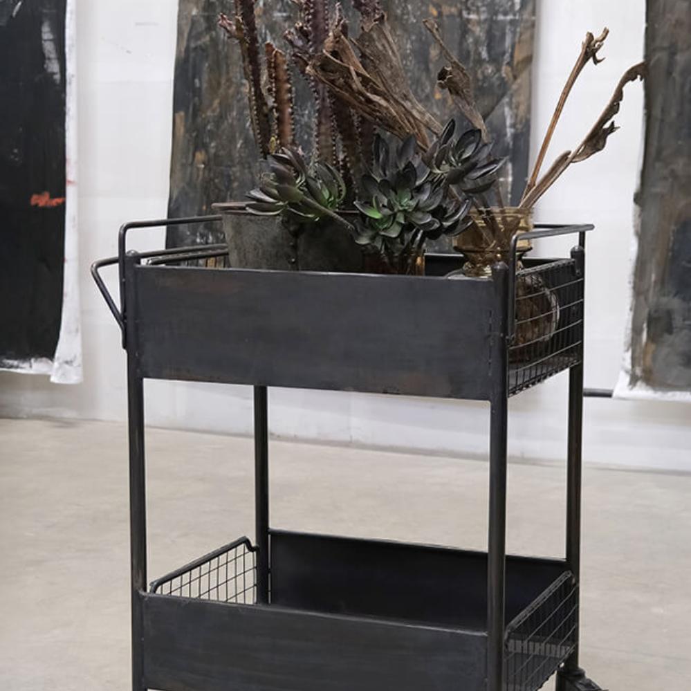 Dieser rustikale, industrielle Rollwagen ist ebenso praktisch wie cool. Mit seinem robusten Eisenrahmen und den hohen Kanten ist er dafür gemacht, all Ihre Dinge an Ort und Stelle zu halten – ohne Kompromisse beim Stil einzugehen. Die großen Räder machen ihn leicht beweglich, während die zwei geräumigen Ablagen viel Stauraum bieten. Verwenden Sie ihn in Ihrem Restaurant oder Café, um Servierutensilien zu organisieren, oder als mobile Bar. Zu Hause kann er der perfekte Helfer in der Küche oder eine stilvolle Aufbewahrungslösung im Wohnzimmer sein. Egal, wo Sie ihn platzieren, dieser Rollwagen verleiht dem Raum eine raue und funktionale Note.