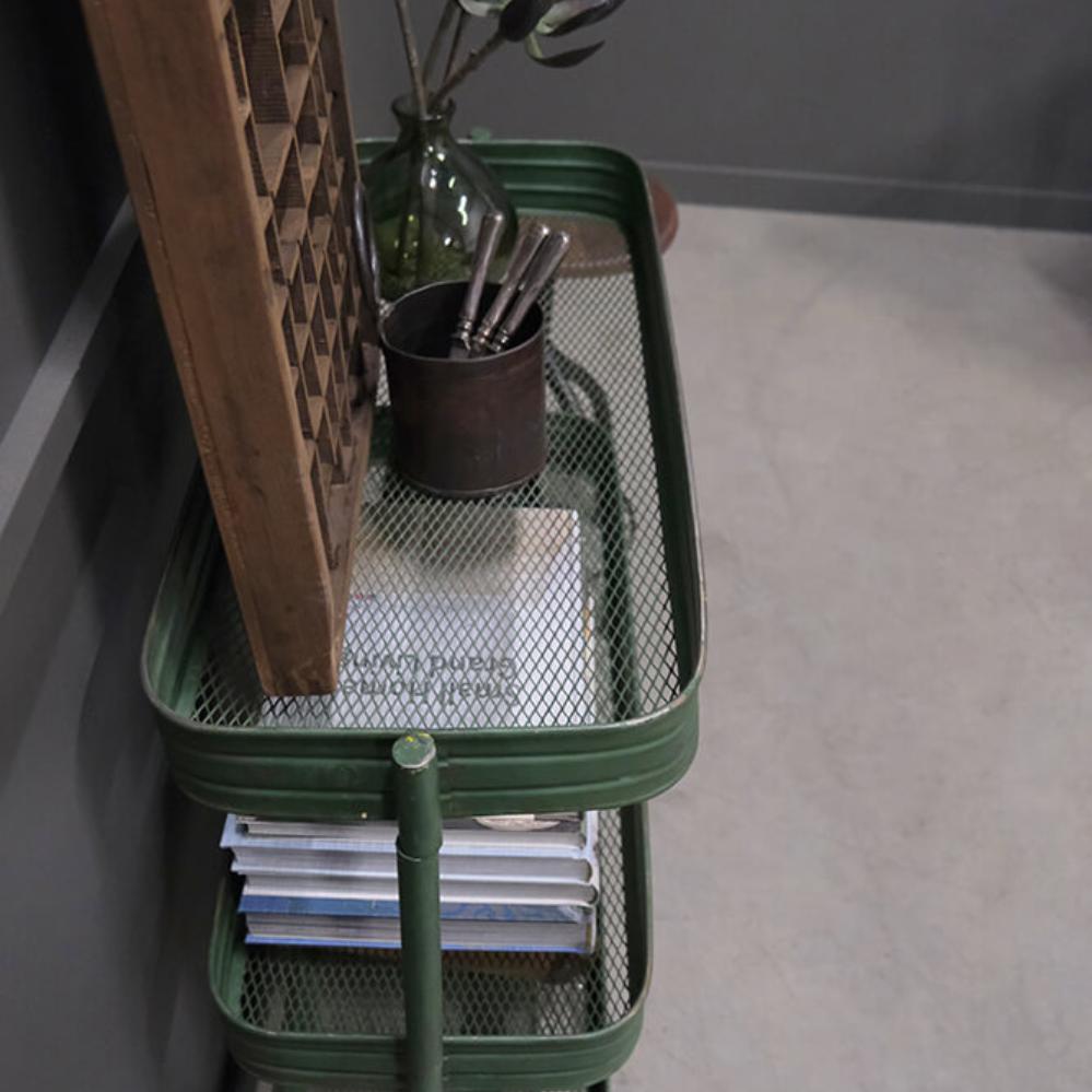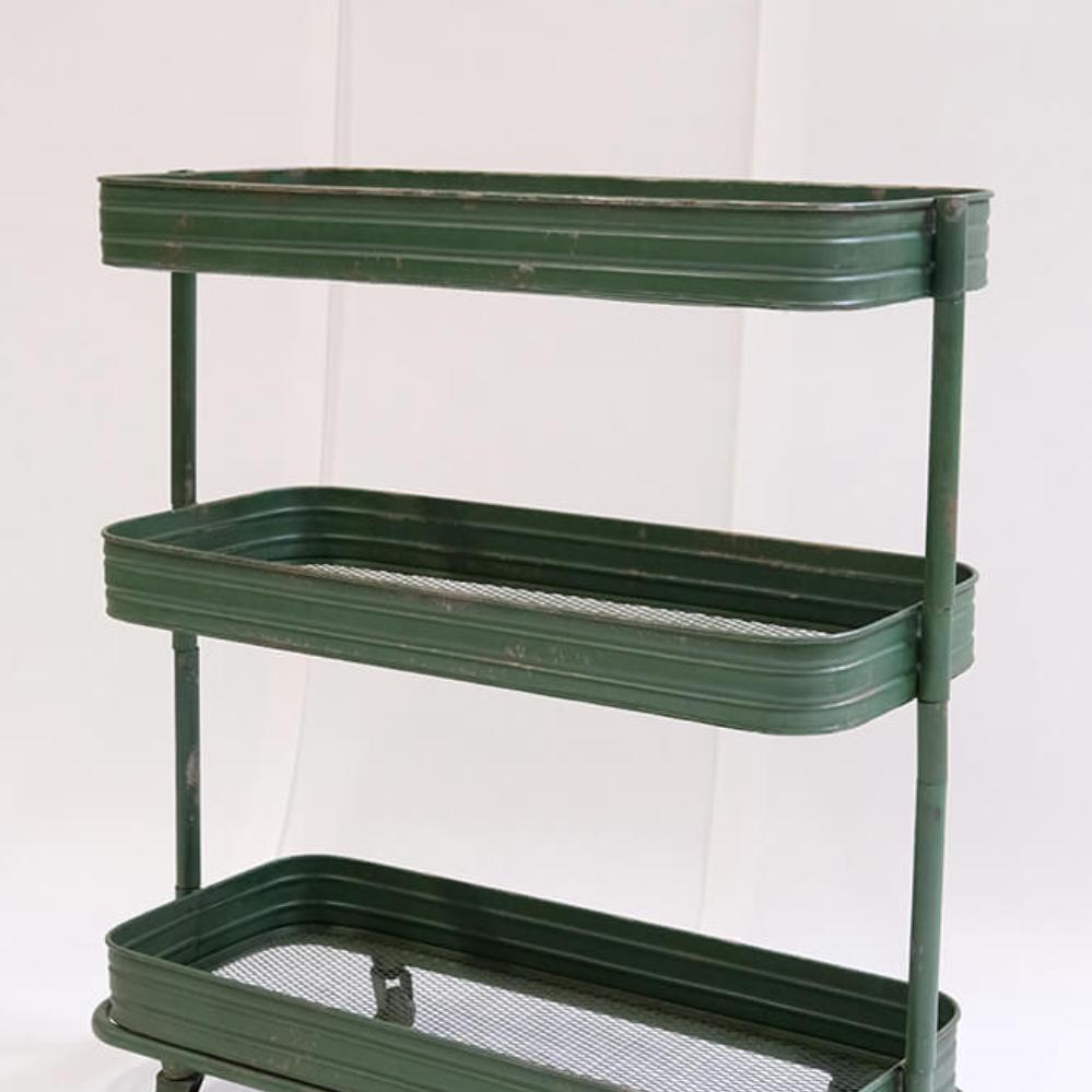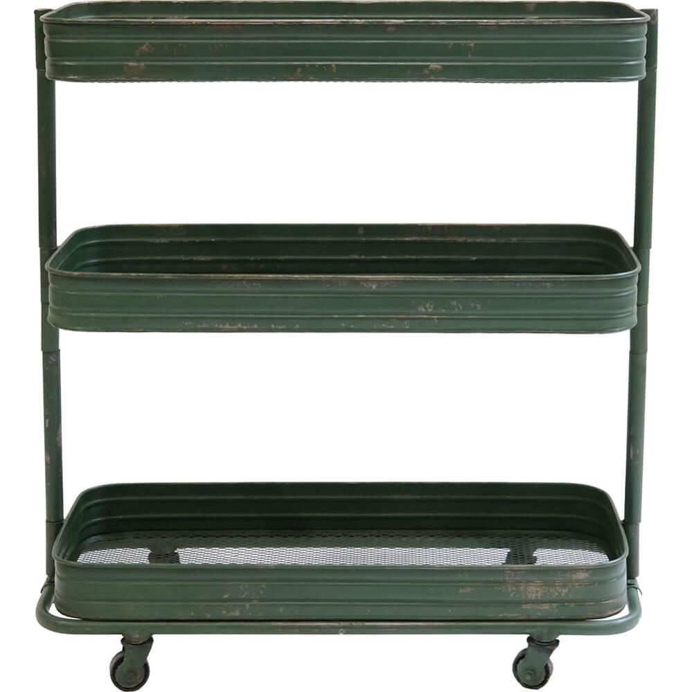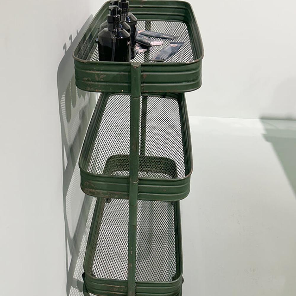 Eisenrollwagen mit 3 perforierten Fächern auf Dekorollen. Er ist ein "Muss". Charmantes und originelles Design mit leicht patiniertem und industriellem Look. Der Rollwagen hat 3 perforierten Fächer. Verwenden Sie den Rollwagen in der Küche für Küchenutensilien, im Büro für Schreibtischzubehör, im Badezimmer für Handtücher und Toilettenpapier, im Ferienhaus oder Kleingartenhaus für Aufbewahrung. Der Wagen wird unmontiert geliefert. Abmessung zwischen mittlerem / oberem Fach ca. 35 cm. Abmessung zwischen unterem / mittlerem Fach ca. 29 cm.