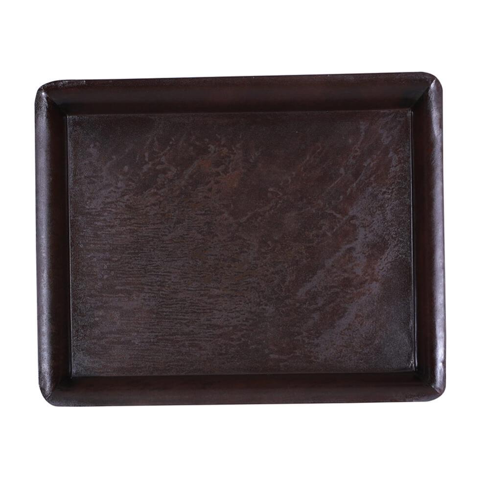 Das rustikale, rechteckige Eisentablett in einer dunklen Metallfarbe ist äußerst vielseitig und dekorativ mit seinem kleinen gebogenen Rand. Verwenden Sie es, um Ihre Kleinigkeiten zu organisieren, Snacks zu servieren oder als stilvolles dekoratives Element in Ihrem Zuhause. Das Tablett fügt sowohl Funktionalität als auch Stil in jede Einrichtung hinzu.