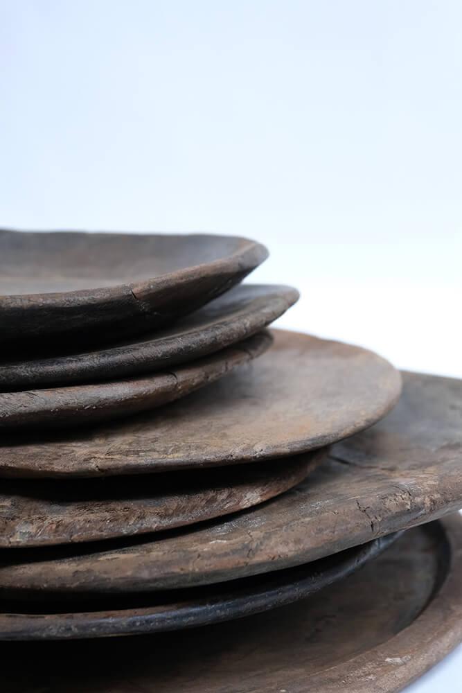 Dieses wunderschöne alte Holztablett strahlt Geschichte und Handwerkskunst aus. Die abgenutzte Oberfläche und die natürliche Patina erzählen Geschichten von Gebrauch und verleihen dem Tablett einen authentischen und rustikalen Charme. Die handgefertigten Details machen jedes Tablett einzigartig, und die organischen Formen unterstreichen ihre natürliche Schönheit. Verwenden Sie das Tablett als dekoratives Detail in Ihrem Café oder Geschäft, wo sie einen Hauch von roher Eleganz hinzufügen kann. Zu Hause kann das Tablett zur Aufbewahrung Ihrer Lieblingskleinigkeiten, Garn oder einfach als Blickfang dienen.