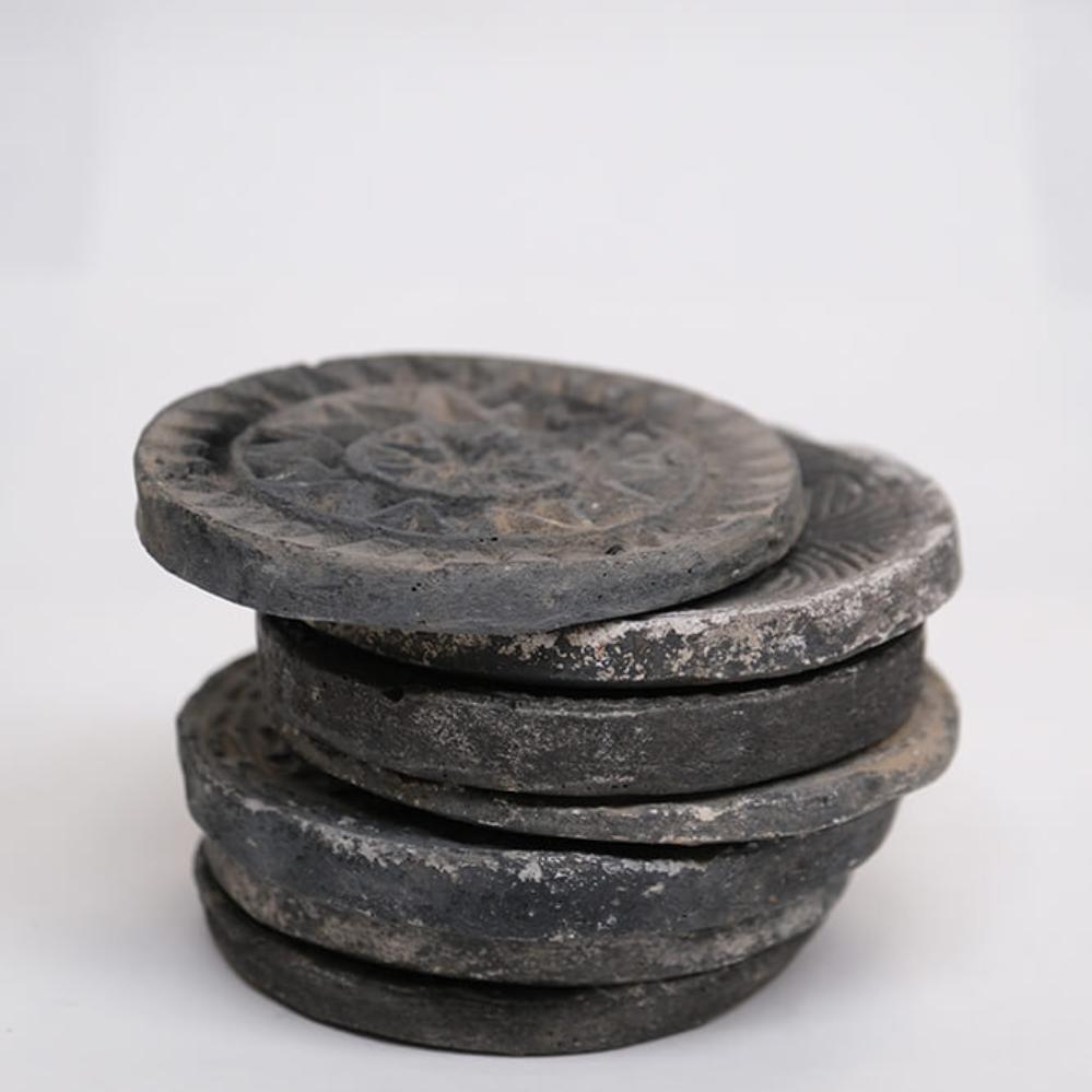 Diese kleinen, runden Keksformen aus Steinmehl strahlen Geschichte und Handwerkskunst aus. Ursprünglich dienten sie dazu, kunstvoll gemusterte Kekse und Gebäckstücke in traditionellen Küchen zu formen. Heute verschönern sie Ihr Zuhause als dekorative Objekte mit viel Patina und Persönlichkeit. Jede Form ist aus massivem Stein geschnitzt und trägt ihr ganz eigenes Ornament – von Sternmotiven bis zu floralen Gittern, keine gleicht der anderen. Sie eignen sich perfekt als kleine Skulpturen, Untersetzer, Wanddekoration oder als Gesprächsthema auf dem Couchtisch. Eine Hommage an das Echte, das Abgenutzte und das schön Unperfekte.