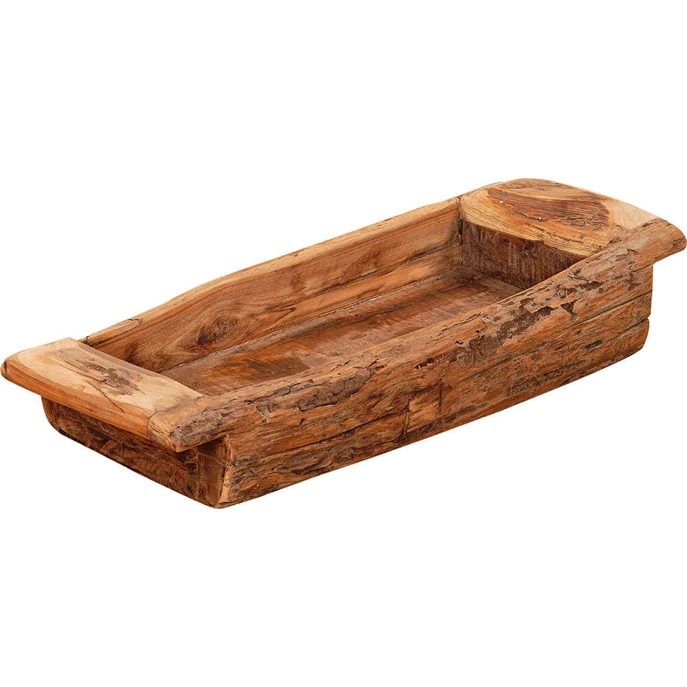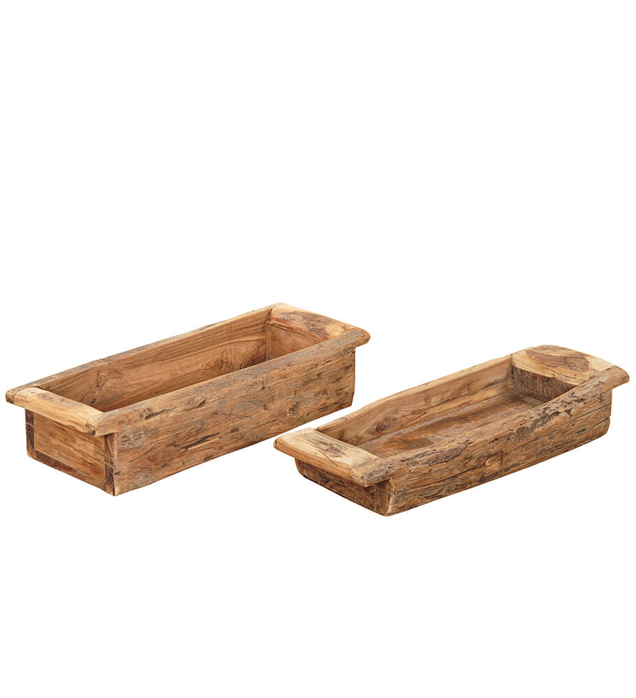 Dieser hölzerne Futtertrog hat eine Ruhe, die man nicht künstlich erzeugen kann. Die Form ist schlicht und langgezogen, und das Holz hat einen warmen Ton entwickelt, der sich leicht in viele verschiedene Einrichtungsstile integrieren lässt. Er wirkt fast wie ein Rahmen für das, was Sie hineinlegen, egal ob Dekorationen, Pflanzen oder Alltagsgegenstände. Verwenden Sie ihn auf dem Esstisch, in der Küche oder im Badezimmer. Er bündelt Dinge und sorgt für ein harmonischeres Gesamtbild, ohne dabei zu viel Aufmerksamkeit auf sich zu ziehen. Wir haben mehrere auf Lager, und sie unterscheiden sich in Größe und Ausdruck. So haben Sie die Möglichkeit, genau das Stück zu finden, das perfekt zu Ihnen passt.
