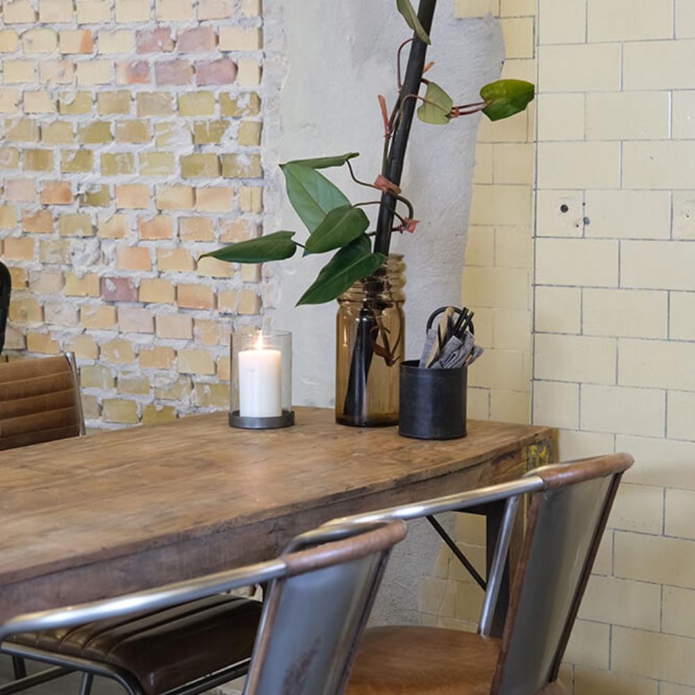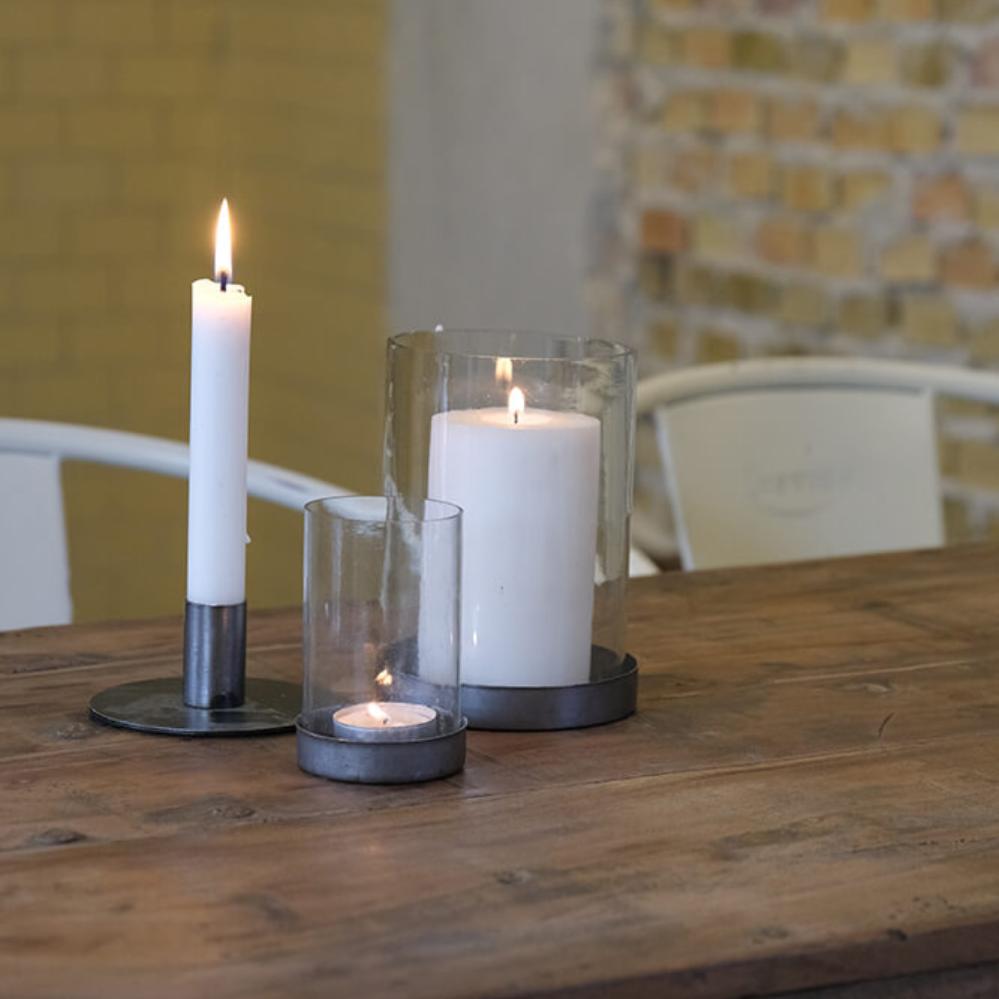 Hurricane Kerzenhalter in einem einfachen rustikalen Design - die Schale ist aus Eisen mit Rostpatina. Verwenden Sie den Hurrikan-Kerzenhalter mit einem Teelicht oder einer kleinen Blockkerze und sorgen Sie für Gemütlichkeit und Wärme. Der Kerzenhalter kann auch zur Dekoration mit Zapfen oder anderem Grün / Dekoration verwendet werden.
