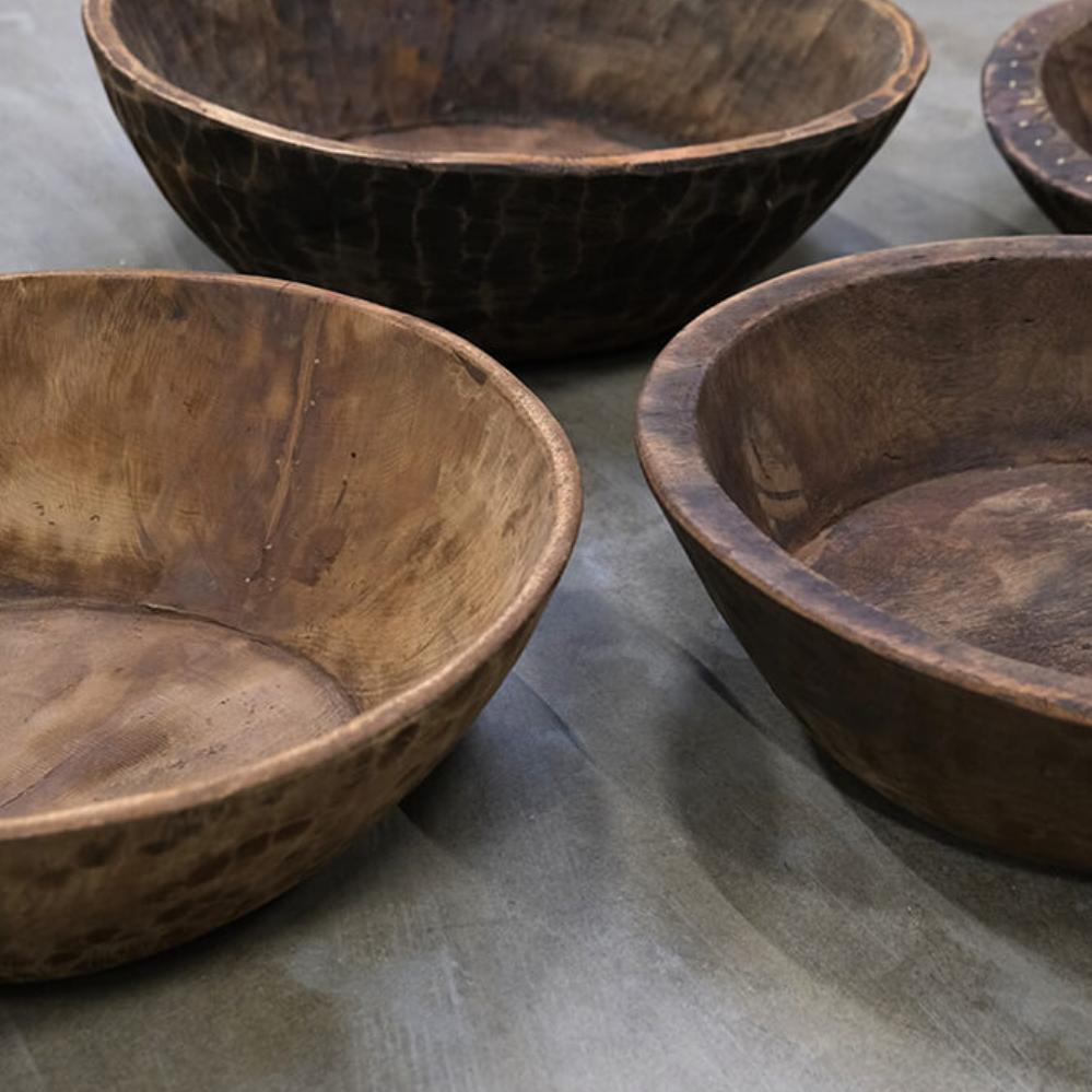 Diese fantastischen alten Holzschalen in Größe M sind voller Geschichte und Charakter. Mit einem Durchmesser von 40–50 cm und einer Höhe von 8-16 cm sind sie geräumig und robust und zeigen deutliche Gebrauchsspuren und Patina, die nur echtes Handwerk haben kann. Die Schalen eignen sich ideal als Dekoration für Zuhause, Restaurants oder Geschäfte. Verwenden Sie sie als natürlichen Blickfang auf dem Esstisch mit Obst, Brot oder als Basis für ein rustikales Arrangement mit Pflanzen und Kerzen. Sie verleihen jedem Raum Wärme und Seele und passen perfekt in moderne sowie vintage-inspirierte Einrichtungen. Keine zwei Holzschalen sind gleich, aber alle strahlen einen Charme aus, der sie zu etwas ganz Besonderem macht.