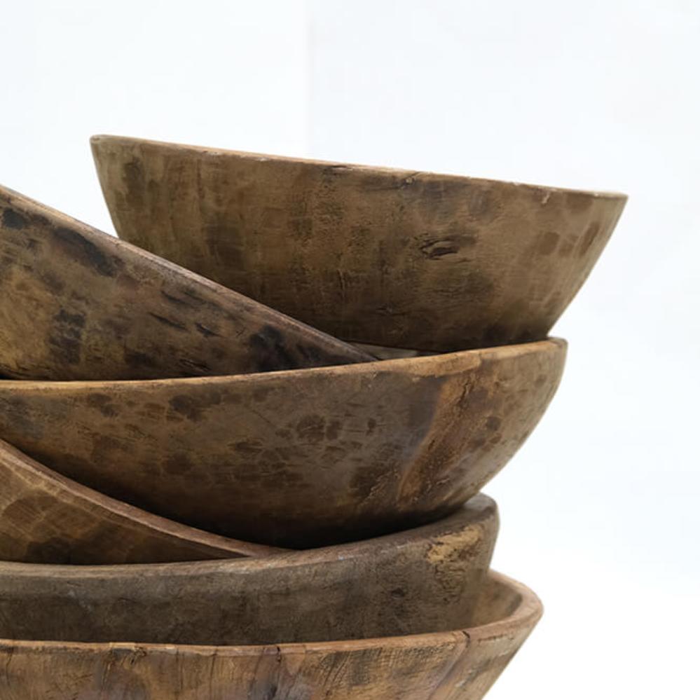 Schaffen Sie eine natürliche und authentische Atmosphäre mit diesen wunderschönen handgefertigten Holzschalen mit einem Durchmesser von 30 bis 40 cm. Jede Schale zeichnet sich durch ihre eigene Patina, Maserung und kleine Unebenheiten aus, die ihr besonderen Charme und eine eigene Geschichte verleihen. Diese kleineren Holzschalen eignen sich perfekt zur Aufbewahrung von Obst, Brot oder als dekorative Elemente in Ihrem Café, Restaurant oder in den gemütlichen Ecken Ihres Zuhauses. Verwenden Sie sie, um einen rustikalen und rohen Akzent auf dem Esstisch, in Ihrem Geschäft oder als Teil einer größeren Dekoration zu setzen. Die Kombination aus rohem Holz und handgefertigter Verarbeitung verleiht den Schalen einen authentischen Ausdruck, der sowohl in moderne als auch in klassische Einrichtungen passt.
