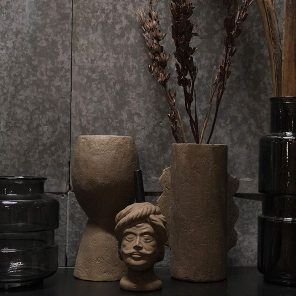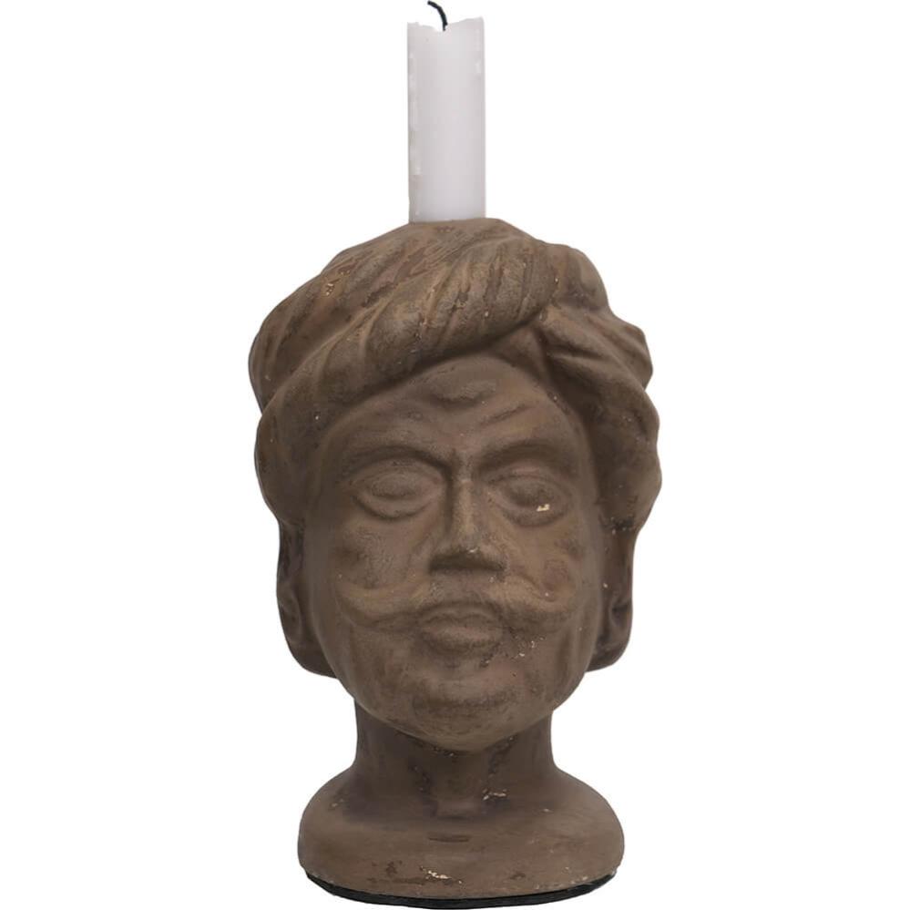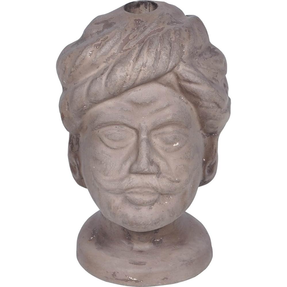 Handgemachter lustiger und dekorativer Kerzenhalter aus Papiermaché. Laden Sie diese wunderschöne Figur, die einen Indianer mit Turban darstellt, in Ihr Ambiente ein. Der Kerzenhalter hat eine patinierte Oberfläche und viele kleine Details. Mischen Sie den Kerzenhalter mit anderen Produkten aus unserer Papiermaché-Serie, um ein wunderschönes natürliches Stillleben zu kreieren. Verwenden Sie eine Manschette, um die Figur zu schützen und Brandflecken zu vermeiden.