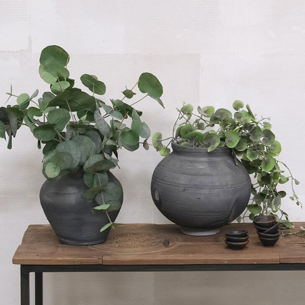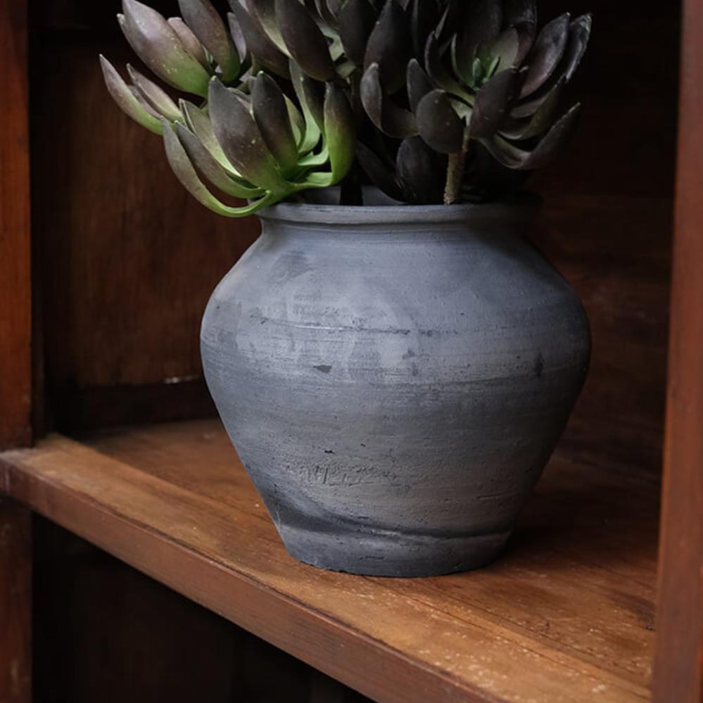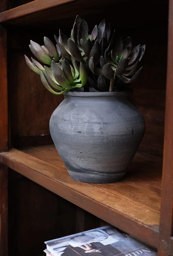 Dieser dunkle Tontopf strahlt rustikalen Charme und natürliche Eleganz aus. Mit seiner klassischen, abgerundeten Form und der rohen Oberfläche ist er perfekt als dekoratives Detail in Ihrer Einrichtung. Nutzen Sie ihn für grüne Pflanzen oder als eigenständigen Blickfang in Ihrem Dekor. Die Patina und das handgefertigte Erscheinungsbild des Topfes verleihen jedem Raum Persönlichkeit und Seele. Der Topf ist nicht wasserdicht, daher empfehlen wir die Verwendung eines Kunststoffeinsatzes, wenn Sie ihn bepflanzen.