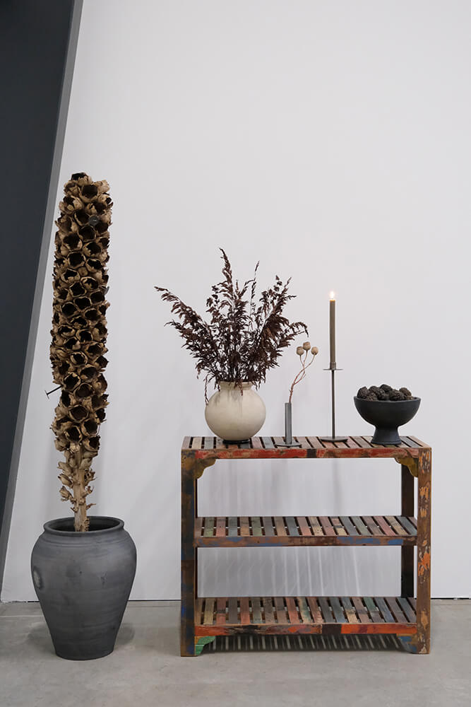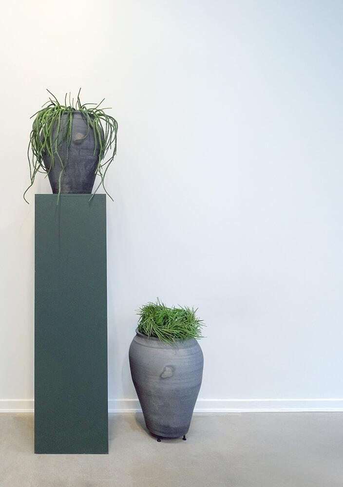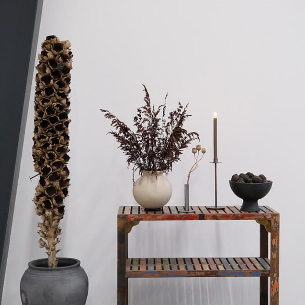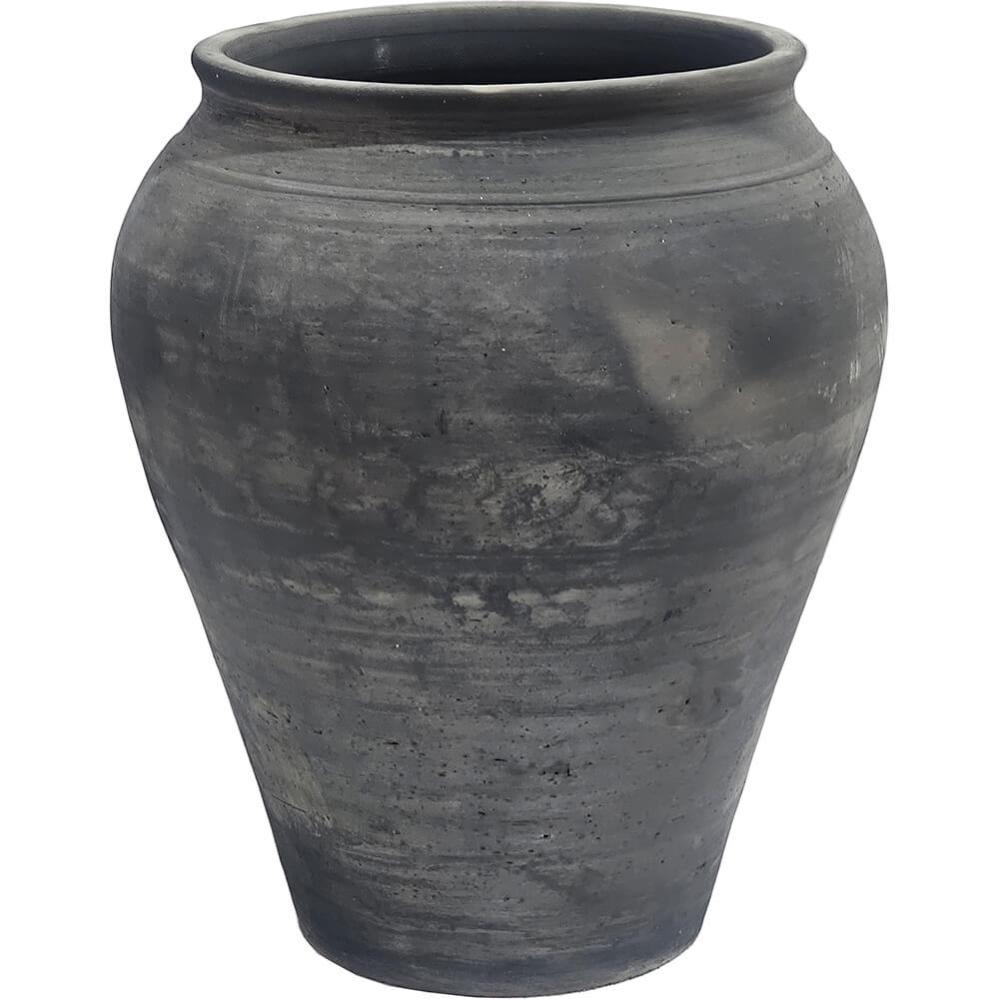 Dieser Tontopf ist der Beweis dafür, dass Schlichtheit und Charakter wunderbar zusammenpassen. Mit einer Höhe von 50 cm und einer großzügigen Öffnung von 26 cm bietet der Topf viele Einsatzmöglichkeiten – als Bodenvase, dekoratives Objekt oder für Trockenblumen und Zweige. Die Oberfläche ist dunkel und lebendig, mit feinen Nuancen und kleinen Unregelmäßigkeiten, die dem Topf einen rohen, fast steinernen Ausdruck verleihen. Die organische Form und das klassische Design machen ihn zeitlos und leicht kombinierbar – mit modernen, rustikalen oder industriellen Einrichtungsstilen. Verwenden Sie den Tontopf solo als skulpturales Element oder im Mix mit anderen Vasen, Töpfen und Fundstücken – sowohl in privaten Wohnräumen als auch in kommerziellen Umgebungen wie Geschäften, Hotels oder Restaurants.